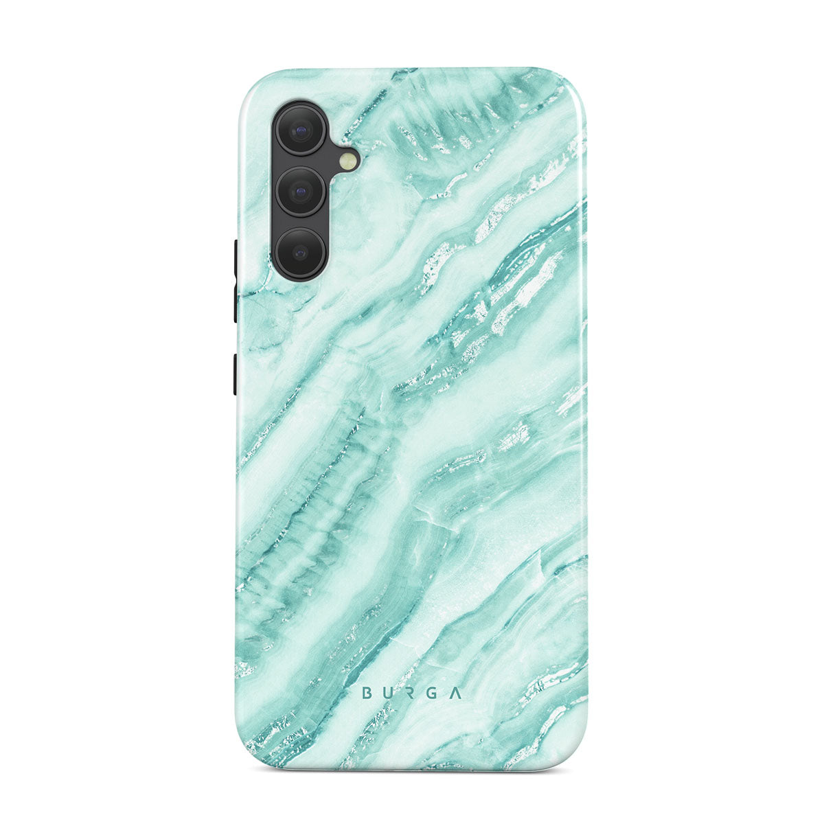 Add freshness to your style with our Fresh Breeze Samsung Galaxy A34 phone case. The soft cyan color of the case is emphasized in a unique marble pattern. Do not let the softness of the color deceive you; the case still offers heavy-duty protection for your cellphone.