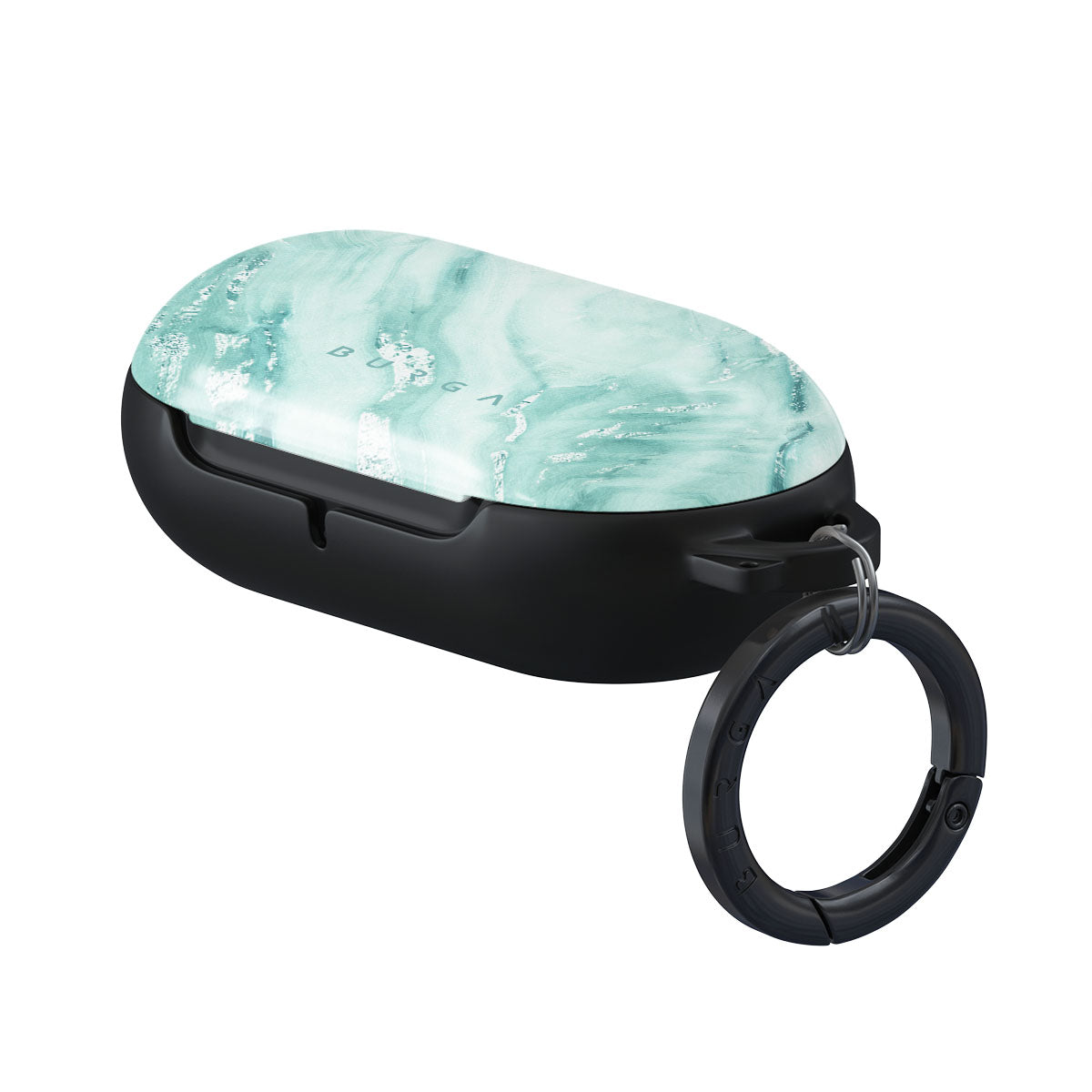 Add some freshness to your style with our Fresh Breeze Samsung Galaxy Buds Plus case cover. A soft cyan color showcased in a trendy marble pattern will add a pop of color to your accessory game, but do not let the color deceive you; the cover still offers a 360° protection for your Samsung Galaxy Buds Plus case. Our case fits perfectly snug around Samsung Galaxy Buds Plus . “Like a glove!” one might say. And it won’t disrupt the wireless charging capabilities of the newer model. There’s even an LED light indicator to prove it (don’t worry, wired charging still works, too). When fitted, the BURGA case will protect the delicate Samsung Galaxy Buds Plus case beneath it from scratches, bumps, and drops while remaining scratch-free itself. Our signature design pattern prints are High Quality, and will never peel or fade away- thanks to our unique printing technology. And finally, a handy carabiner is there to make your life easier and more convenient: just snap it around your keys or belt loop and tackle the day head-on. Your music is right there by your side when you need it.