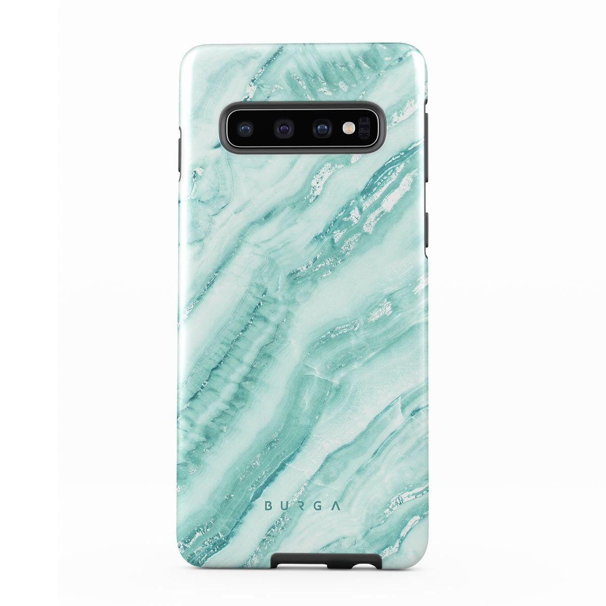 Add freshness to your style with our Fresh Breeze Samsung Galaxy S10 phone case. The soft cyan color of the case is emphasized in a unique marble pattern. Do not let the softness of the color deceive you; the case still offers heavy-duty protection for your cellphone.