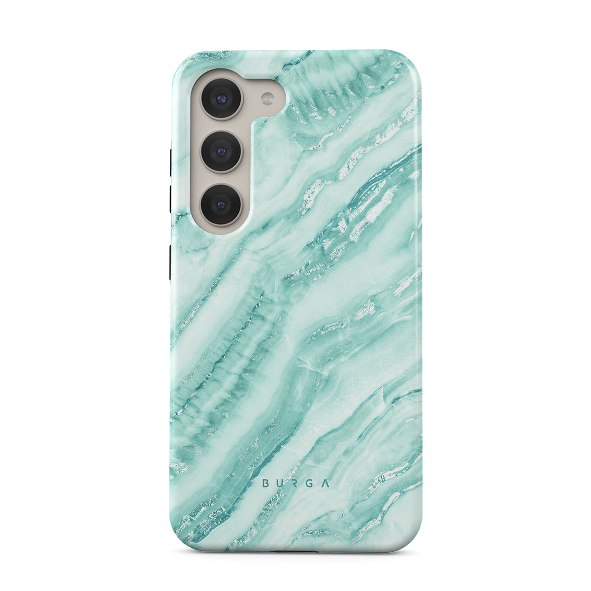 Add freshness to your style with our Fresh Breeze Samsung Galaxy S23 phone case. The soft cyan color of the case is emphasized in a unique marble pattern. Do not let the softness of the color deceive you; the case still offers heavy-duty protection for your cellphone.