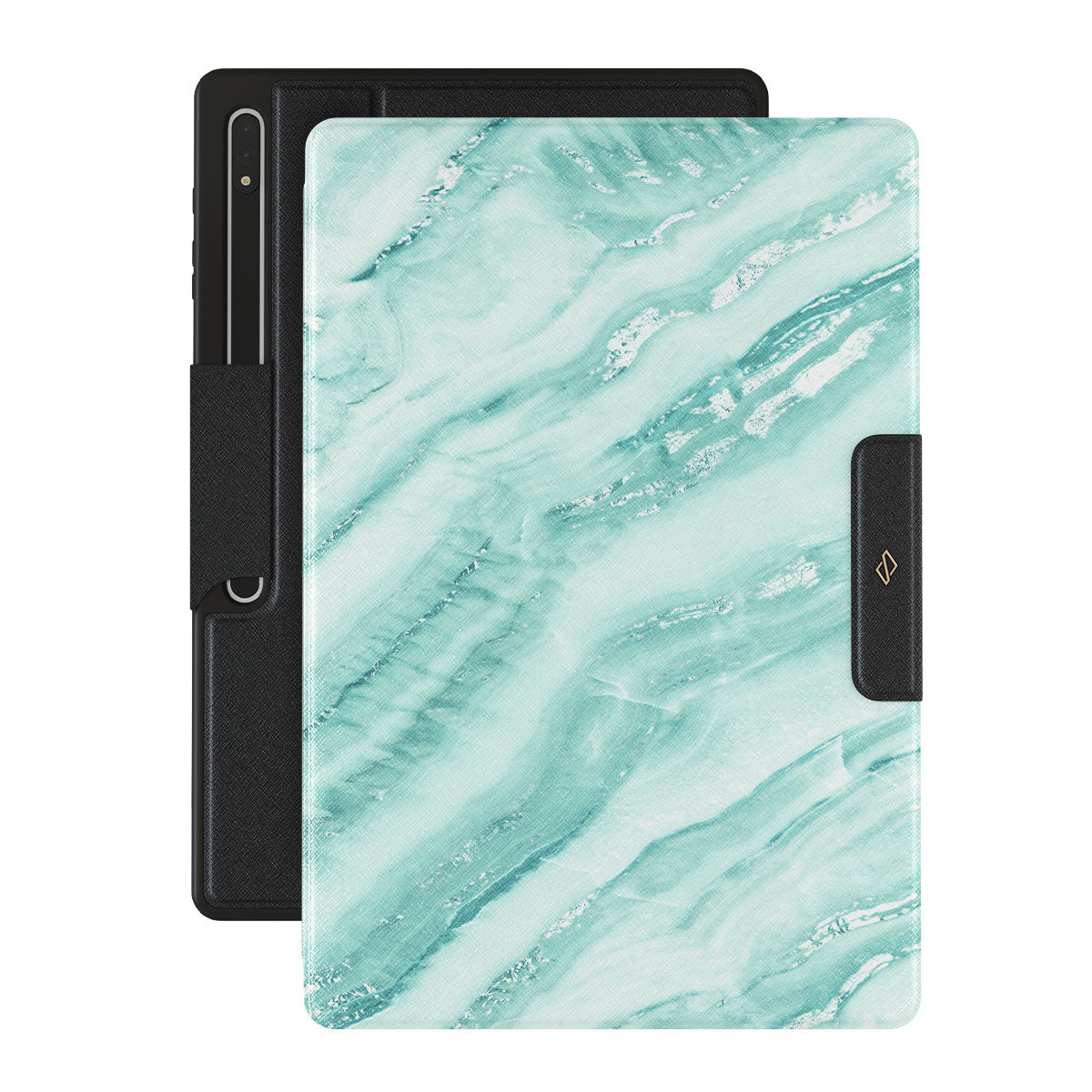 Add freshness to your style with our Fresh Breeze Samsung Galaxy Tab S8 Ultra folio case. The soft cyan color of the case is emphasized in a unique marble pattern. Do not let the softness of the color deceive you; the case still offers heavy-duty protection for your cellGalaxy Tab.
