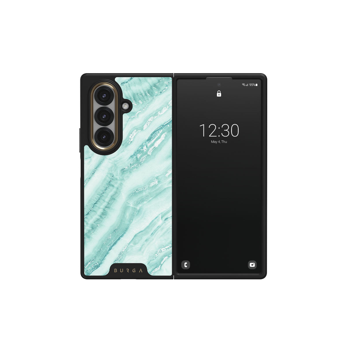 Add freshness to your style with our Fresh Breeze Samsung Galaxy Z Fold 7 phone case. The soft cyan color of the case is emphasized in a unique marble pattern. Do not let the softness of the color deceive you; the case still offers heavy-duty protection for your cellphone.