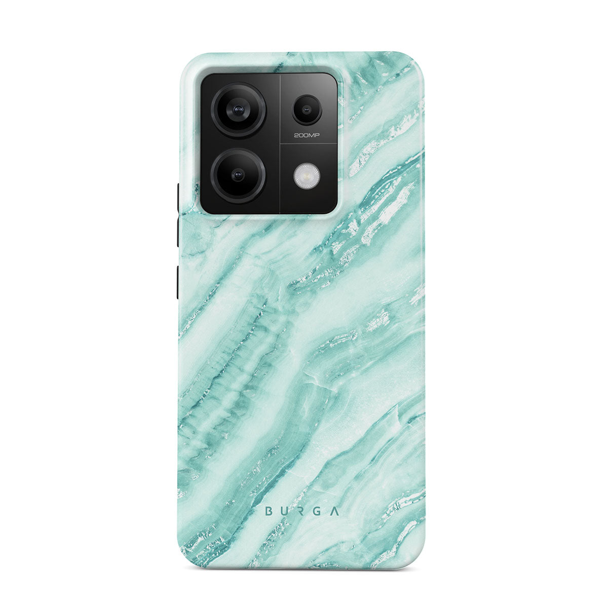 Add freshness to your style with our Fresh Breeze Xiaomi Redmi Note 13 Pro 5G phone case. The soft cyan color of the case is emphasized in a unique marble pattern. Do not let the softness of the color deceive you; the case still offers heavy-duty protection for your cellphone.