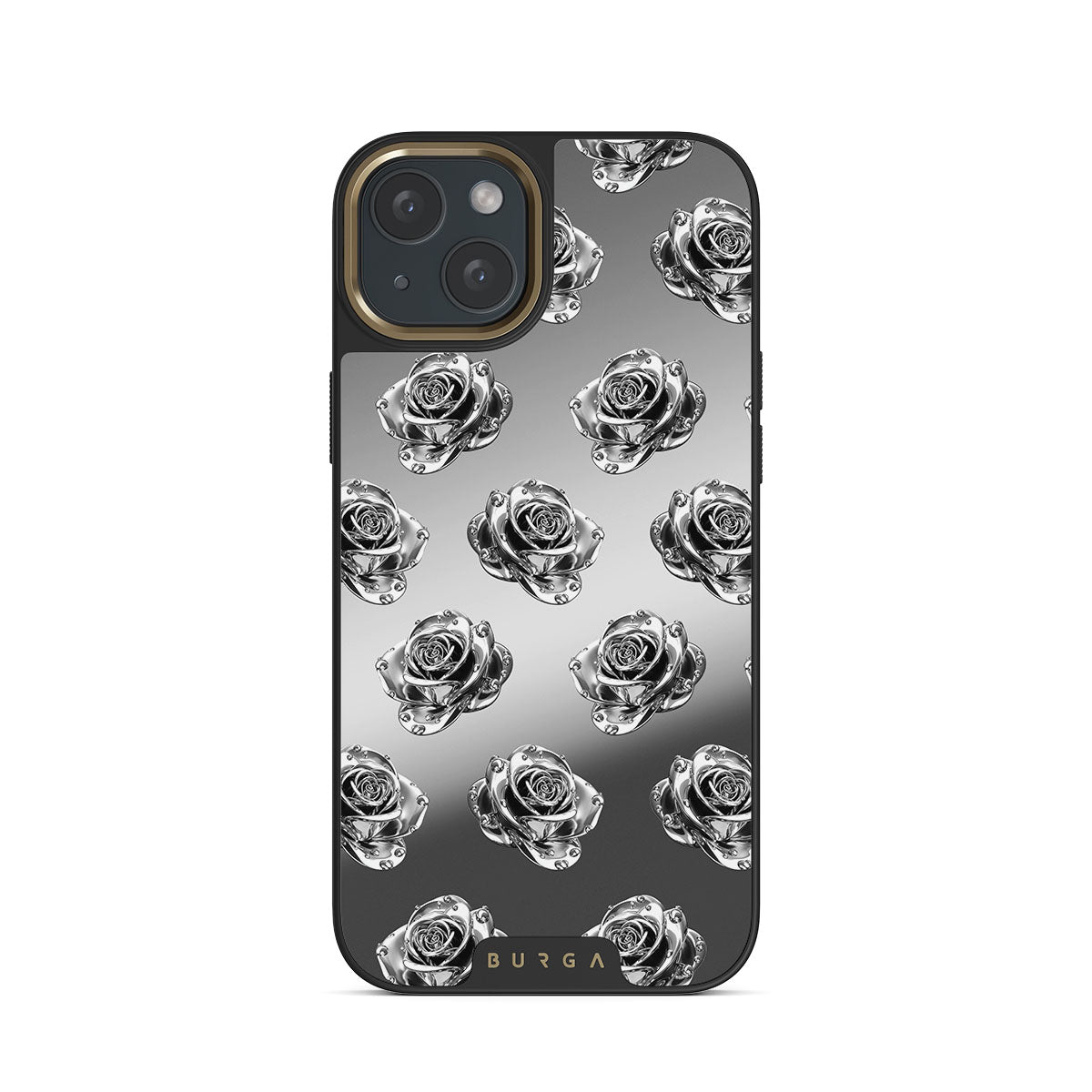 This design features: roses, silver, metallic, flowers, mirror