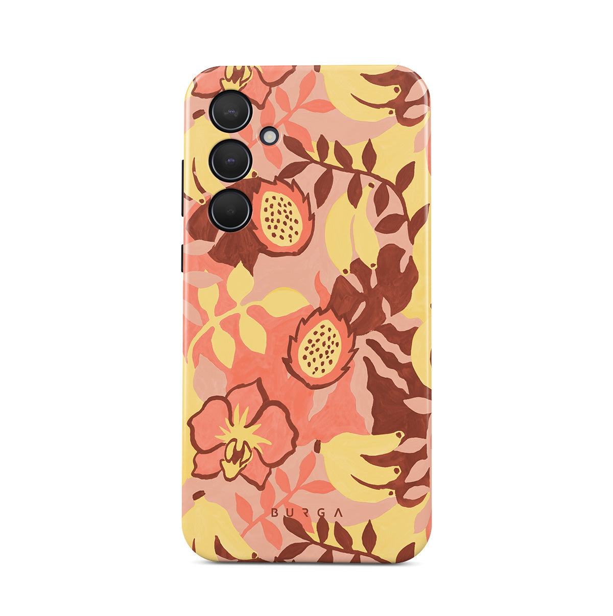 Half still life, half daydream. Fruit that doesn’t know it’s art, floating in a cloud of warm pink. This Samsung Galaxy A35 phone case design is giving: “I only eat mangoes in bed.”