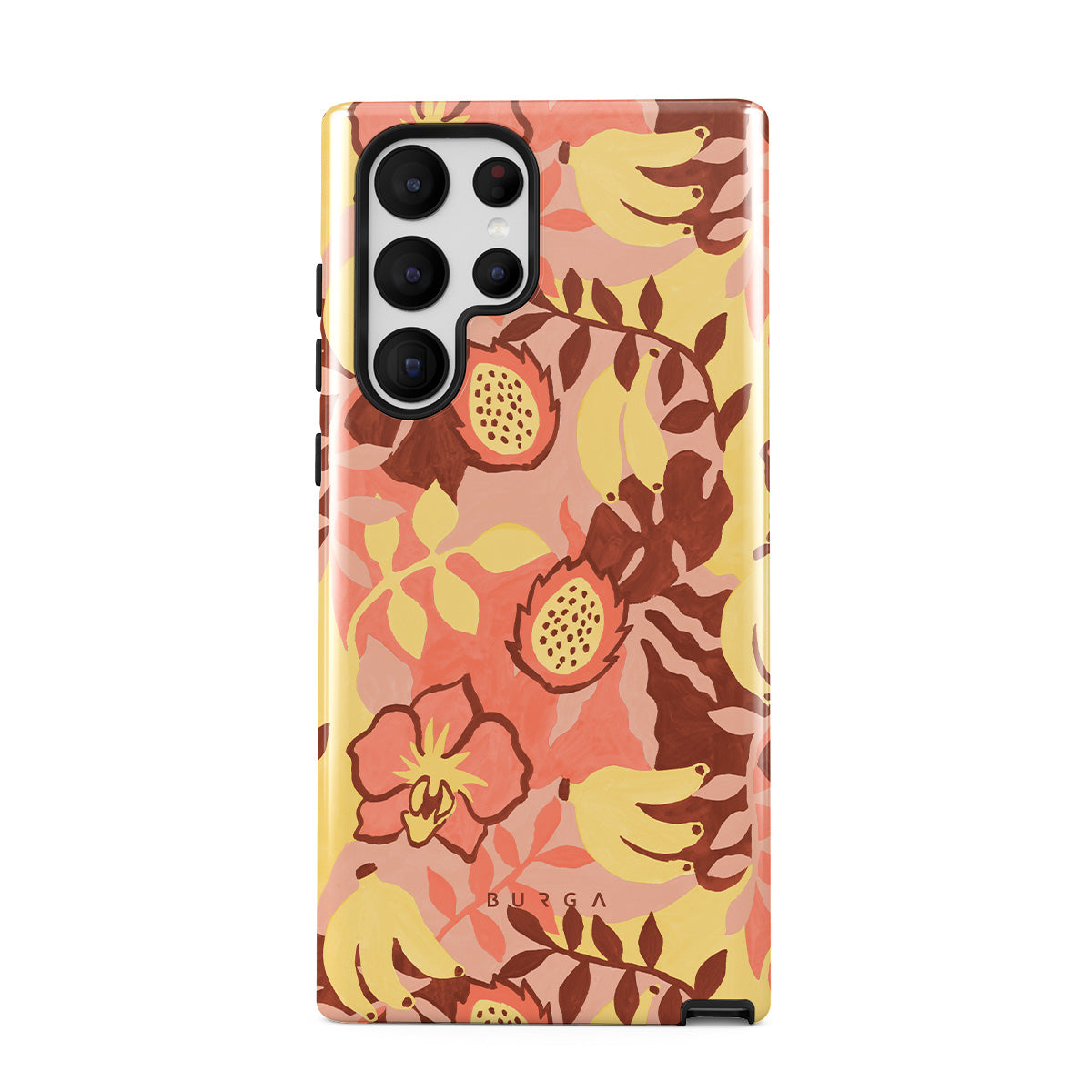Half still life, half daydream. Fruit that doesn’t know it’s art, floating in a cloud of warm pink. This Samsung Galaxy S22 Ultra phone case design is giving: “I only eat mangoes in bed.”