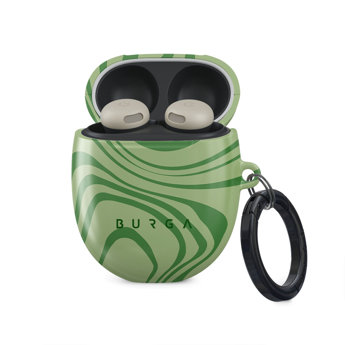 Our Funky Sensation Google Pixel Buds Pro 2 Case cover design is a perfect abstract piece for those who love soft pastel colors but still want to stand out. A sharper take on the liquid swirl design in green shades will accompany your device perfectly.