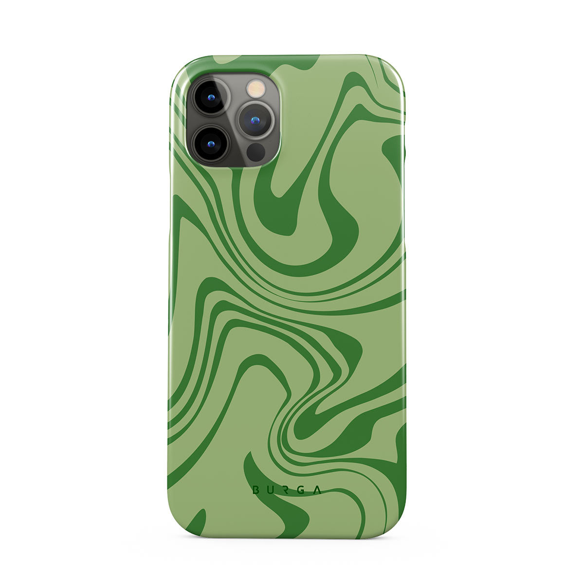 Our Funky Sensation iPhone 12 Pro Max phone case design is a perfect abstract piece for those who love soft pastel colors but still want to stand out. A sharper take on the liquid swirl design in green shades will accompany your device perfectly.