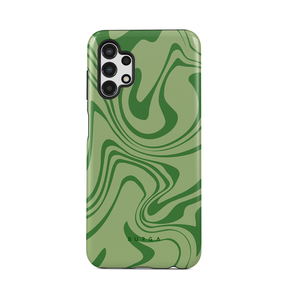 Our Funky Sensation Samsung Galaxy A13 4G phone case design is a perfect abstract piece for those who love soft pastel colors but still want to stand out. A sharper take on the liquid swirl design in green shades will accompany your device perfectly.