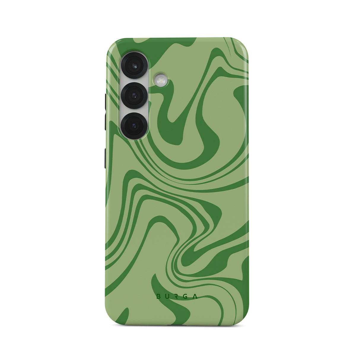 Our Funky Sensation Samsung Galaxy S25 Plus phone case design is a perfect abstract piece for those who love soft pastel colors but still want to stand out. A sharper take on the liquid swirl design in green shades will accompany your device perfectly.