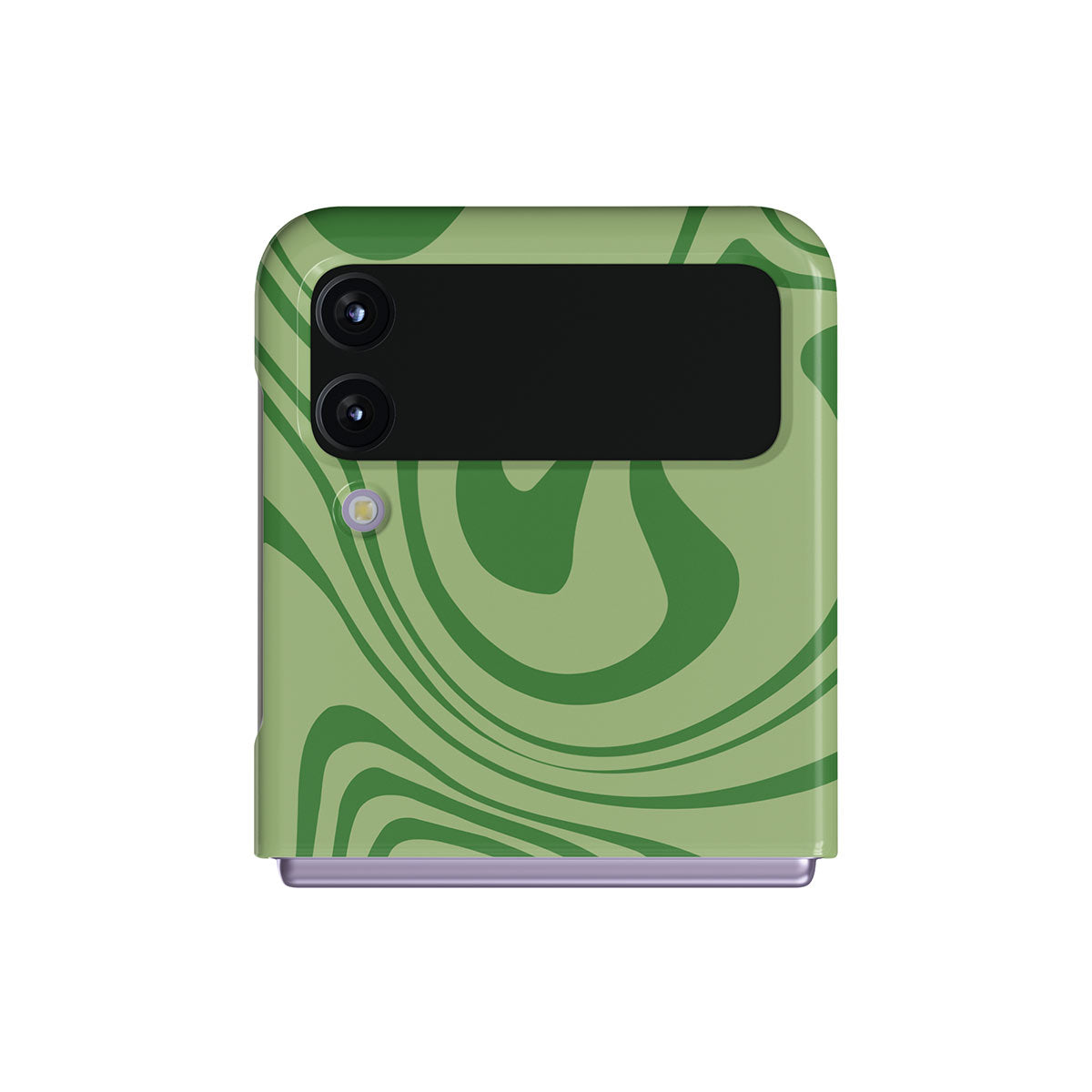 Our Funky Sensation Samsung Galaxy Z Flip 4 phone case design is a perfect abstract piece for those who love soft pastel colors but still want to stand out. A sharper take on the liquid swirl design in green shades will accompany your device perfectly.