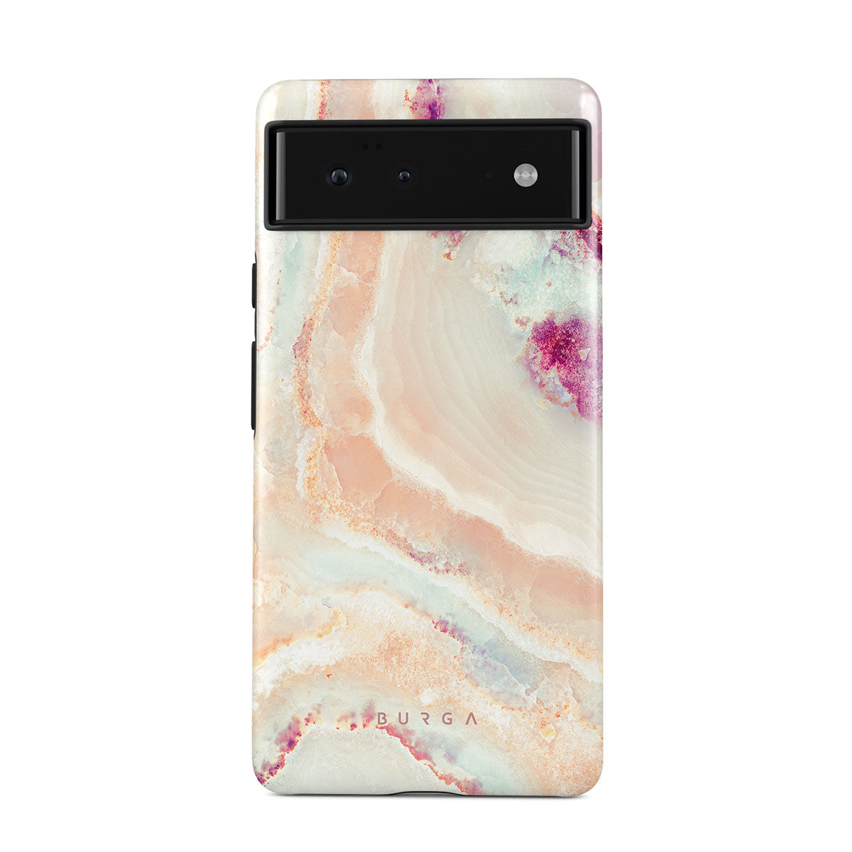 The soft color scheme of coral, pink, blue, and purple of our Berry Sorbet Google Pixel 6a phone case radiates soft girly vibes. The feminine touch is felt throughout the design, making it an excellent choice to add to the springtime wardrobe and protect your phone from scratches and falls.