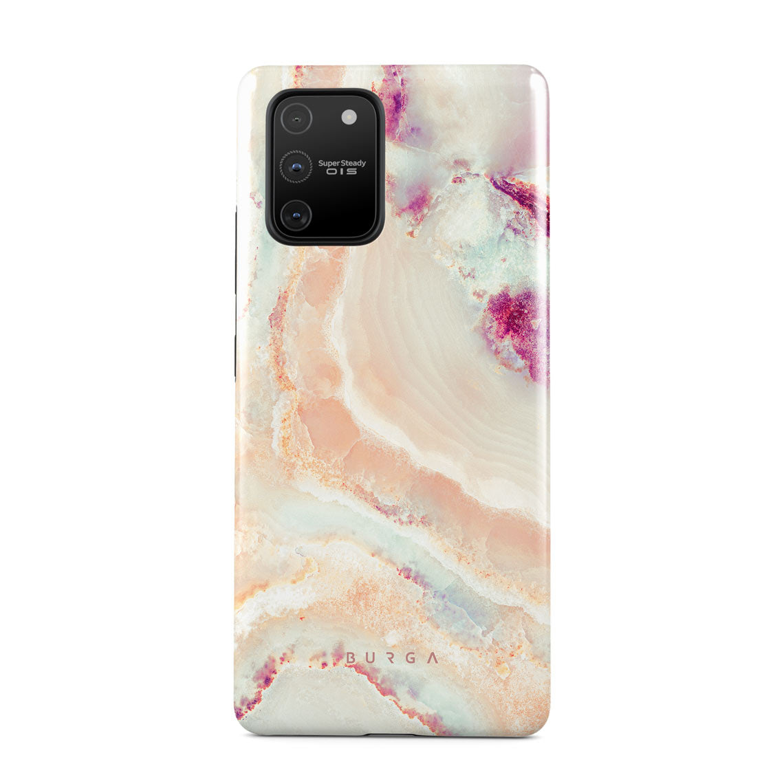 The soft color scheme of coral, pink, blue, and purple of our Berry Sorbet Samsung Galaxy S10 Lite phone case radiates soft girly vibes. The feminine touch is felt throughout the design, making it an excellent choice to add to the springtime wardrobe and protect your phone from scratches and falls.