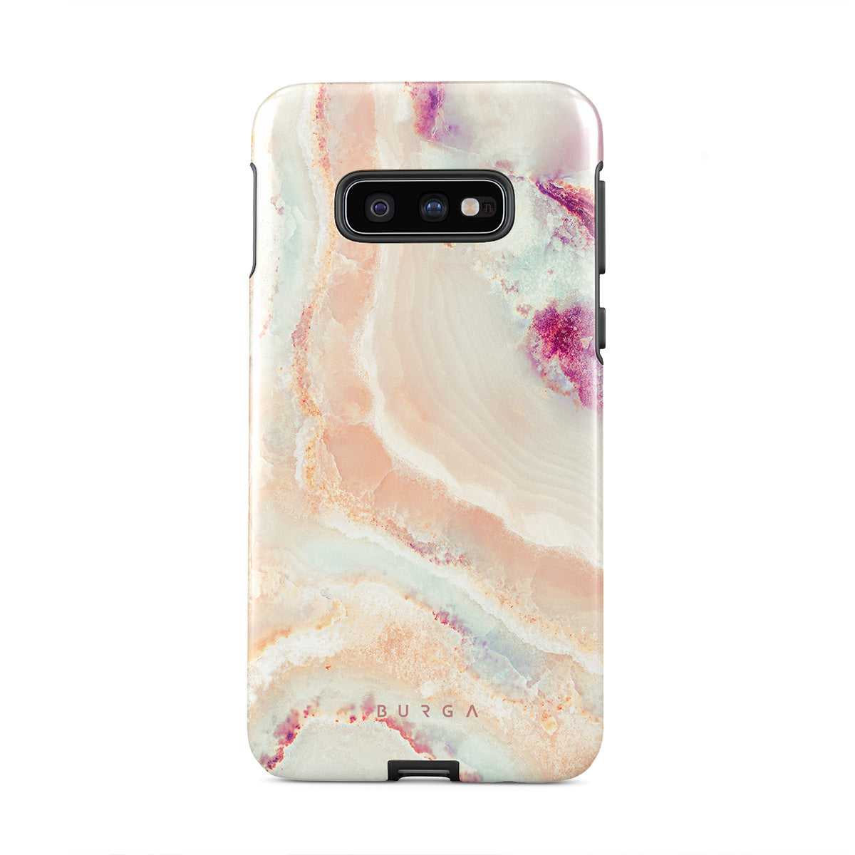 The soft color scheme of coral, pink, blue, and purple of our Berry Sorbet Samsung Galaxy S10E phone case radiates soft girly vibes. The feminine touch is felt throughout the design, making it an excellent choice to add to the springtime wardrobe and protect your phone from scratches and falls.