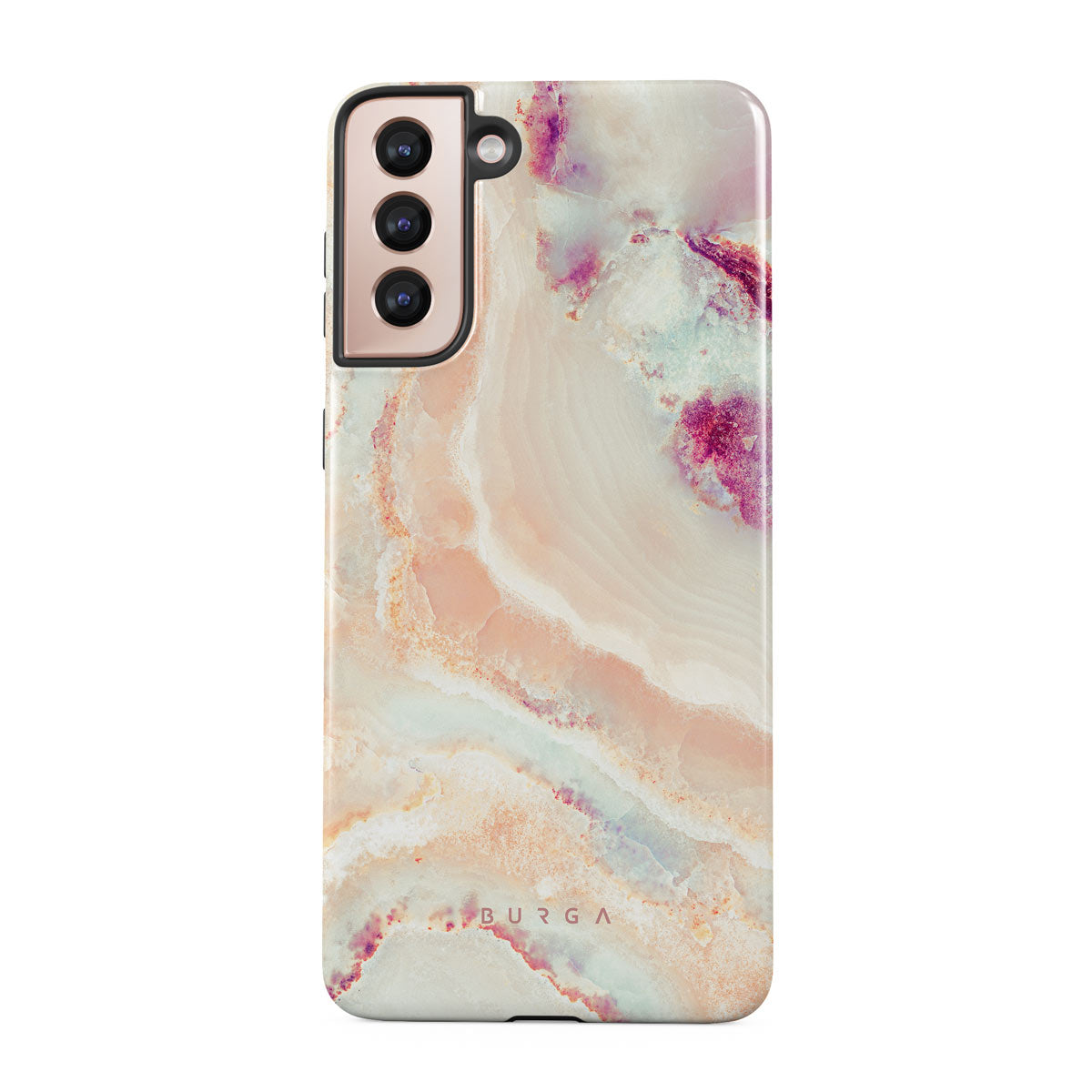 The soft color scheme of coral, pink, blue, and purple of our Berry Sorbet Samsung Galaxy S21 Plus phone case radiates soft girly vibes. The feminine touch is felt throughout the design, making it an excellent choice to add to the springtime wardrobe and protect your phone from scratches and falls.