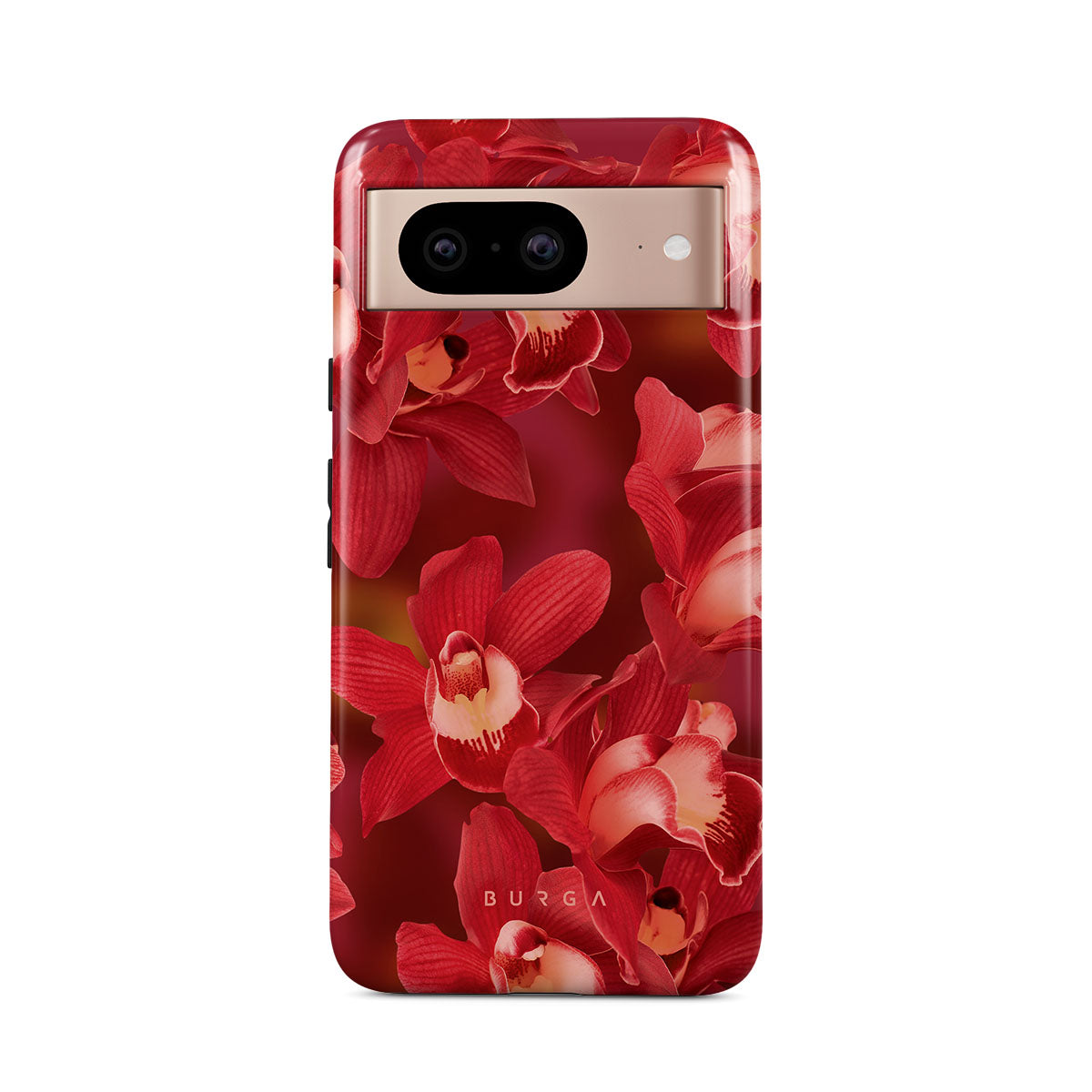 The deep red orchids emerge with a passionate intensity, evoking the fervor and depth of emotions that come with fully experiencing life. They are a vibrant call to embrace every heartbeat, to live deeply and love boldly. Discover the Goddess Energy Google Pixel 8 phone case design.