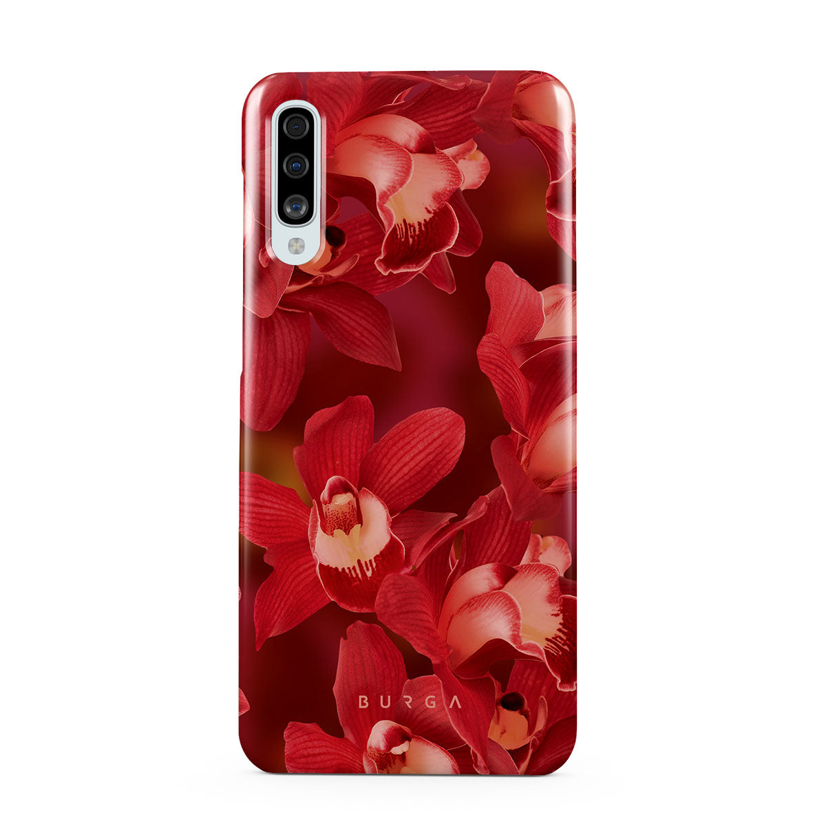 The deep red orchids emerge with a passionate intensity, evoking the fervor and depth of emotions that come with fully experiencing life. They are a vibrant call to embrace every heartbeat, to live deeply and love boldly. Discover the Goddess Energy Samsung Galaxy A50 phone case design.