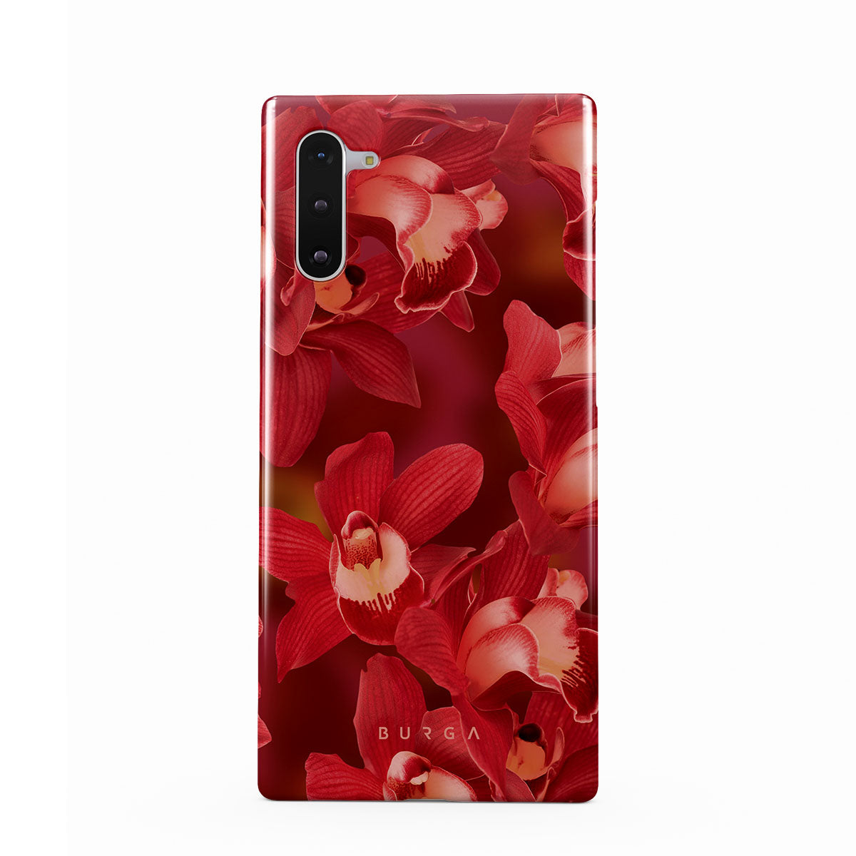 The deep red orchids emerge with a passionate intensity, evoking the fervor and depth of emotions that come with fully experiencing life. They are a vibrant call to embrace every heartbeat, to live deeply and love boldly. Discover the Goddess Energy Samsung Galaxy Note 10 phone case design.