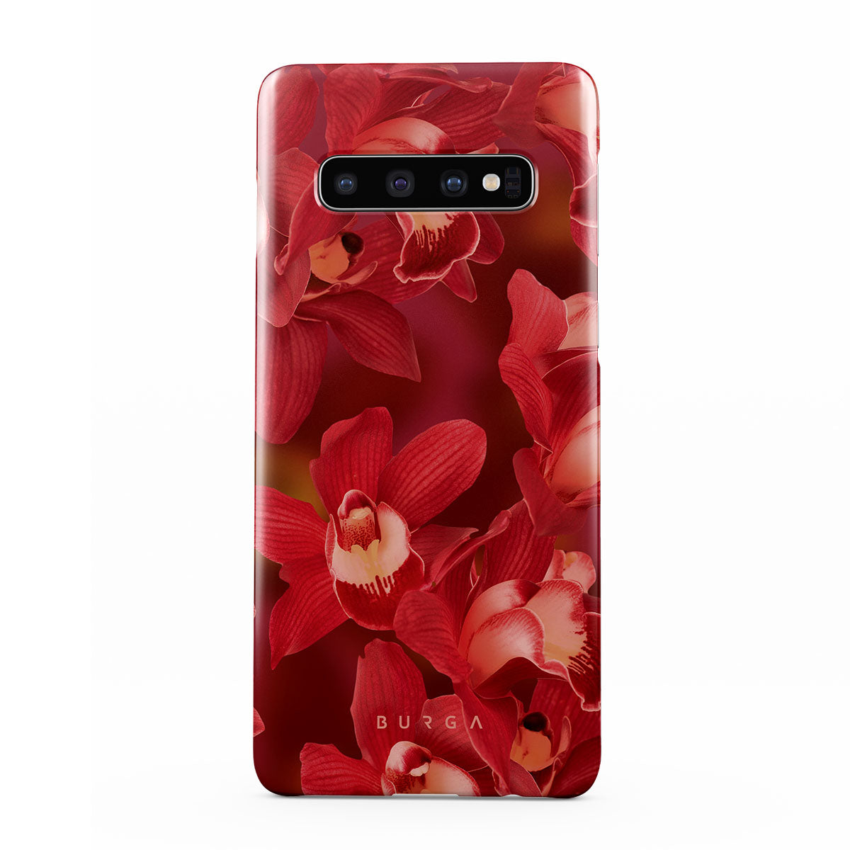 The deep red orchids emerge with a passionate intensity, evoking the fervor and depth of emotions that come with fully experiencing life. They are a vibrant call to embrace every heartbeat, to live deeply and love boldly. Discover the Goddess Energy Samsung Galaxy S10 Plus phone case design.