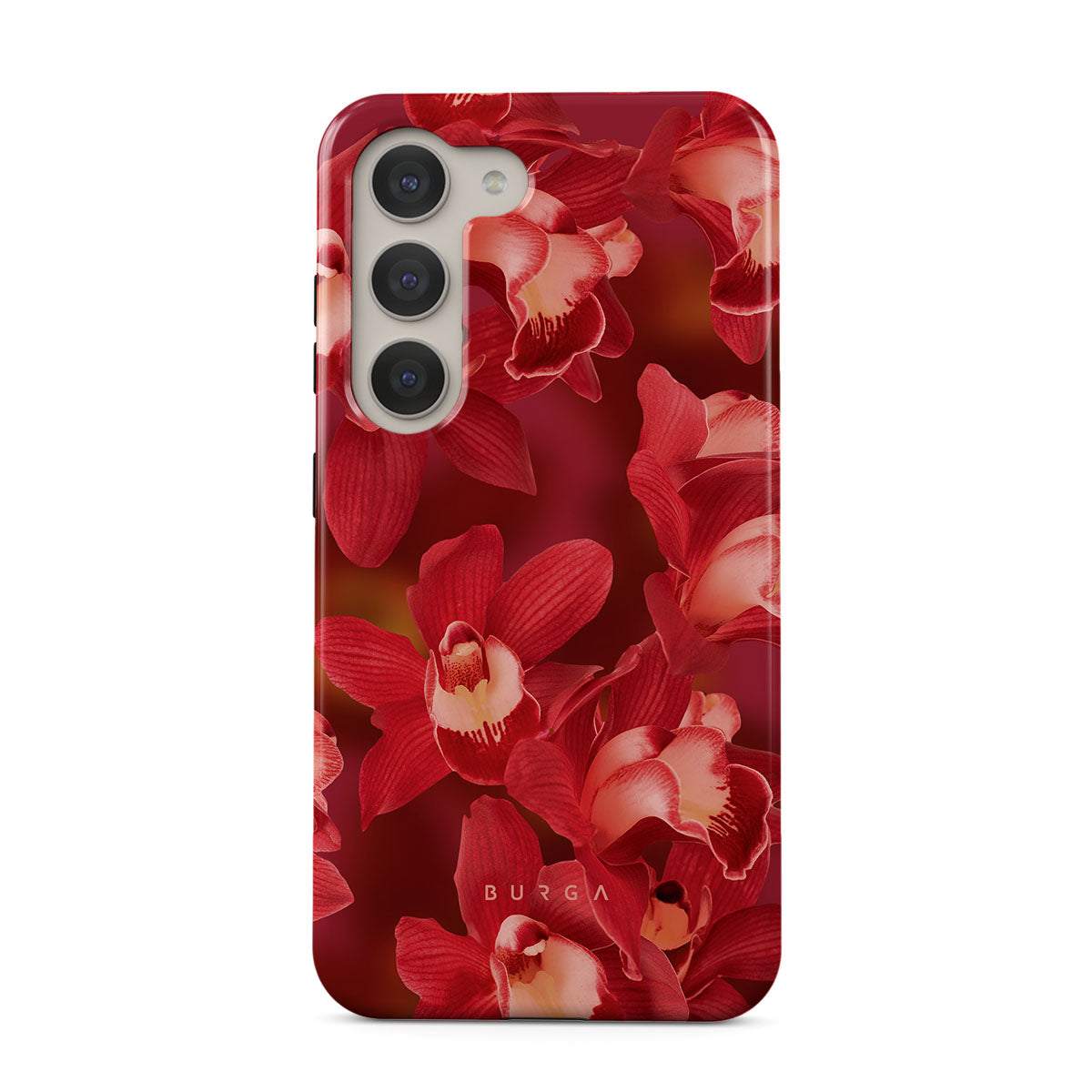 The deep red orchids emerge with a passionate intensity, evoking the fervor and depth of emotions that come with fully experiencing life. They are a vibrant call to embrace every heartbeat, to live deeply and love boldly. Discover the Goddess Energy Samsung Galaxy S23 Plus phone case design.