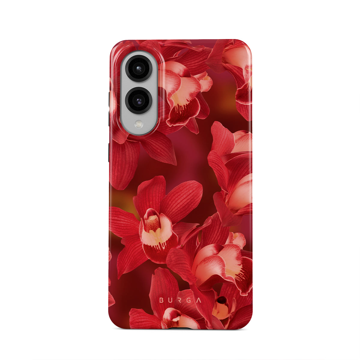The deep red orchids emerge with a passionate intensity, evoking the fervor and depth of emotions that come with fully experiencing life. They are a vibrant call to embrace every heartbeat, to live deeply and love boldly. Discover the Goddess Energy Samsung Galaxy S25 Edge phone case design.