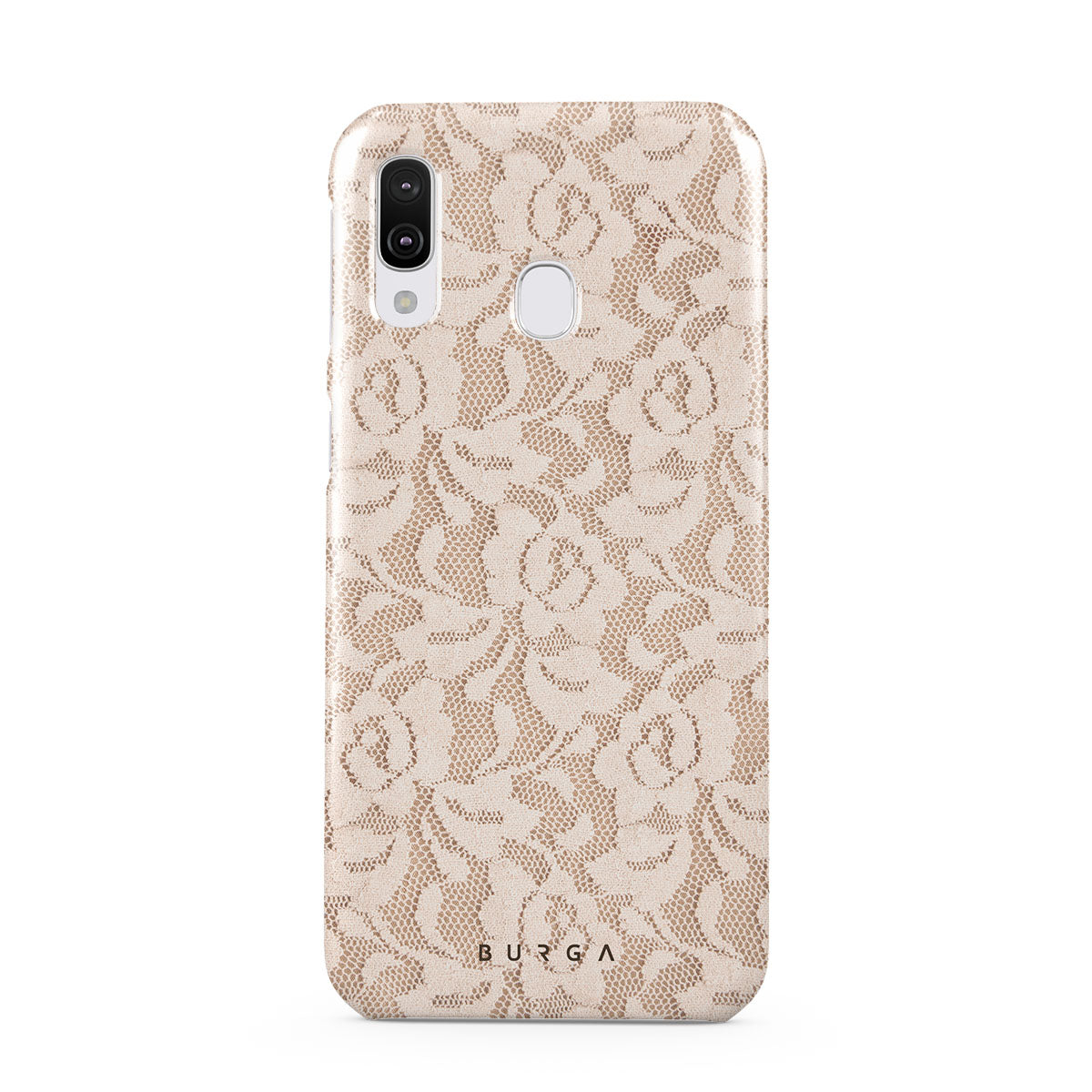 Step into a world of vintage sophistication with the Gone Country Samsung Galaxy A40 phone case. Featuring an intricate neutral lace pattern, this design exudes grace and refinement. It's a tribute to the elegant side of country life—ideal for those who love to keep things classy.