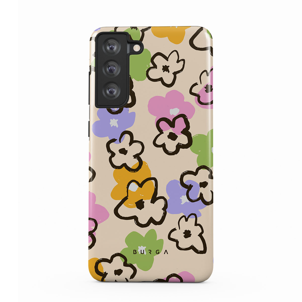 Let these dreamy pastel tones take you to a world brimming with joy, infectious positivity, and Good Vibes! Our playful Samsung Galaxy S21 FE phone case boasts a beautiful mix of flowers doodled in unique sizes, shapes, and hues, each with their own charm. Whether you're a nostalgic enthusiast or a trendsetter, this case is sure to turn heads and make you stand out from the crowd.