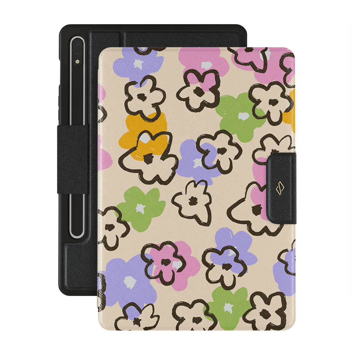 Let these dreamy pastel tones take you to a world brimming with joy, infectious positivity, and Good Vibes! Our playful folio case boasts a beautiful mix of flowers doodled in unique sizes, shapes, and hues, each with their own charm. Whether you're a nostalgic enthusiast or a trendsetter, this case is sure to turn heads and make you stand out from the crowd.
