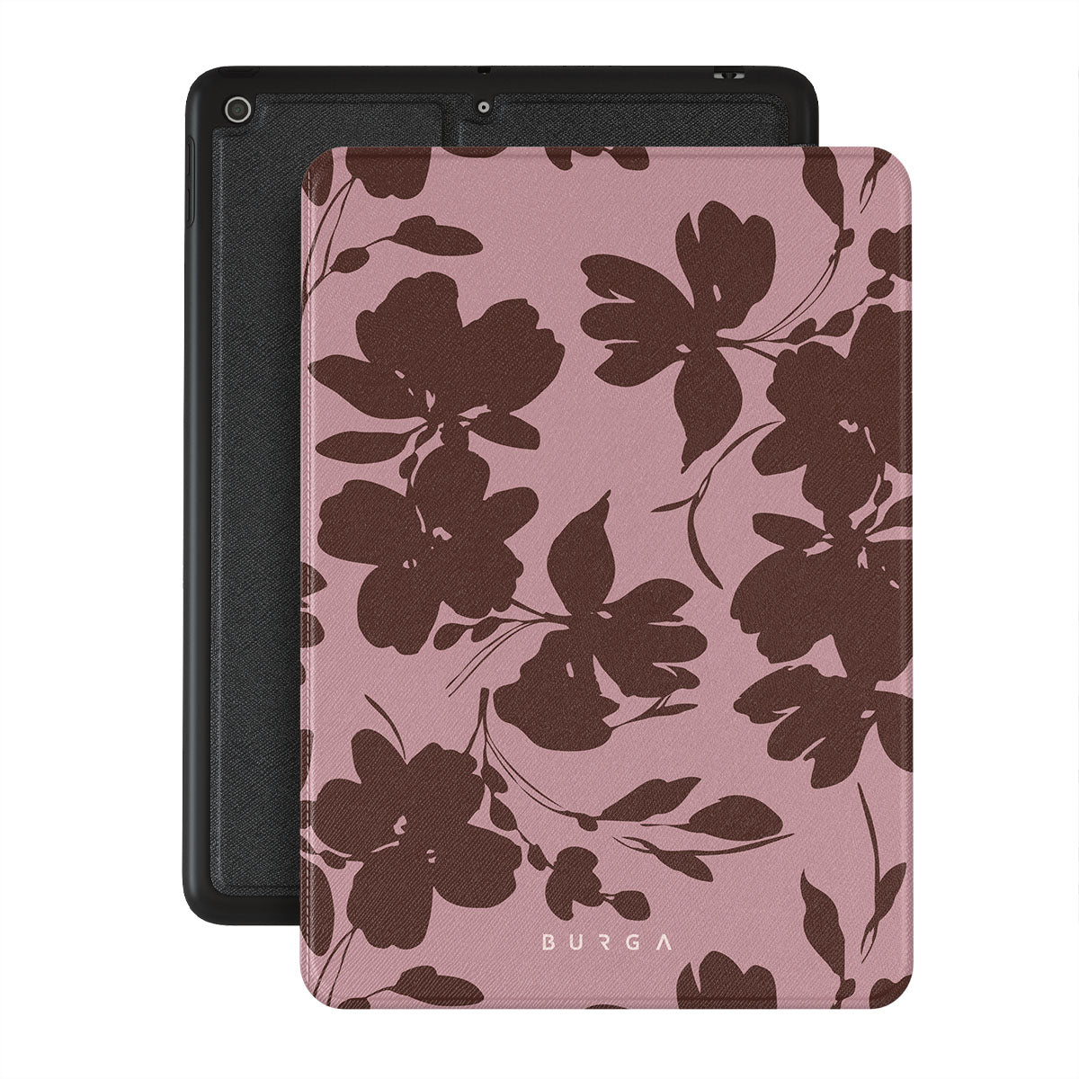 Quietly bold, our Gossip iPad 10.2 (9th/8th/7th Gen) folio case design speaks volumes in subtlety. A soft rosé background, layered with deep red-brown floral accents, gives off a refined, almost mysterious vibe. It's for those who let the details do the talking.