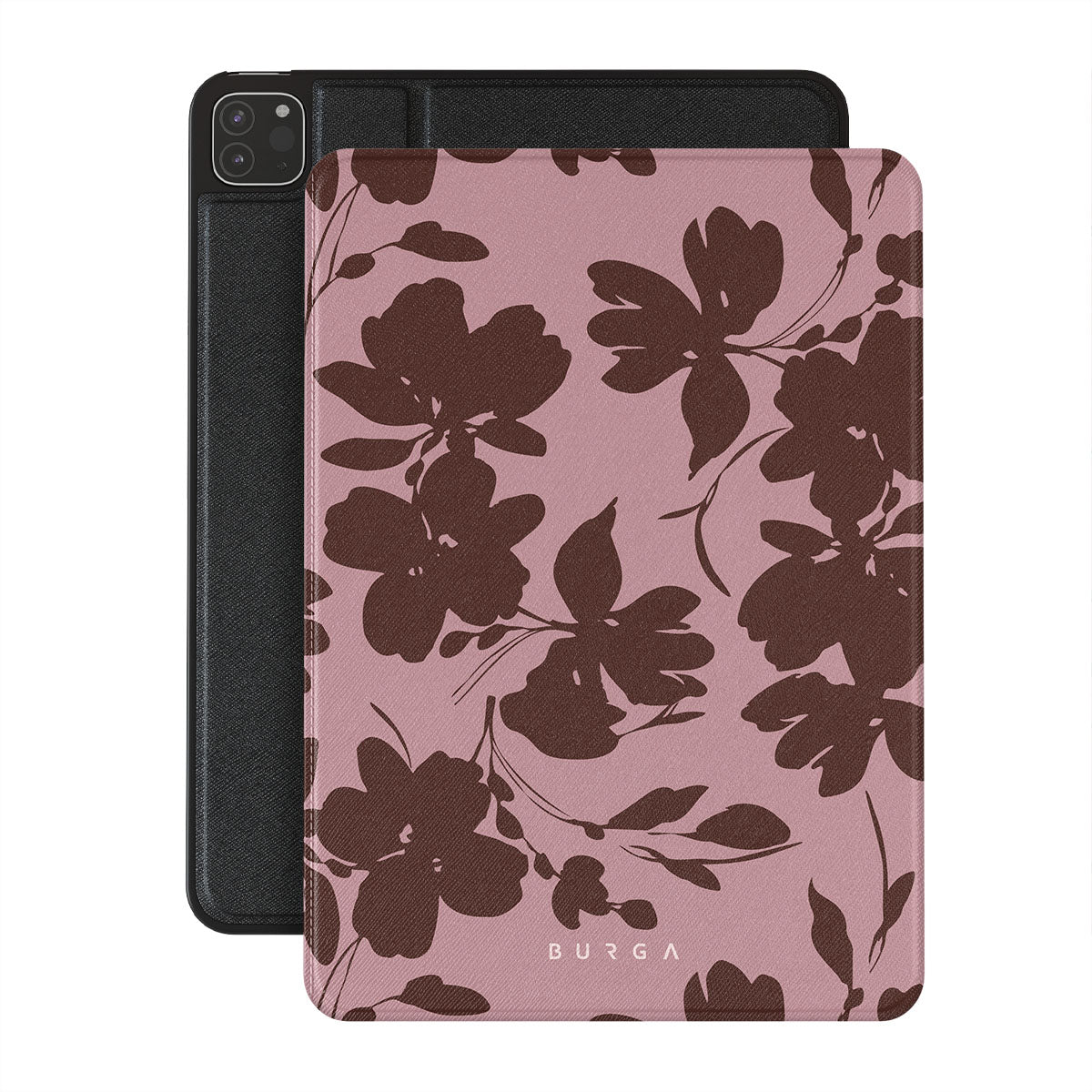 Quietly bold, our Gossip iPad Pro 12.9 (4th/3rd Gen) folio case design speaks volumes in subtlety. A soft rosé background, layered with deep red-brown floral accents, gives off a refined, almost mysterious vibe. It's for those who let the details do the talking.