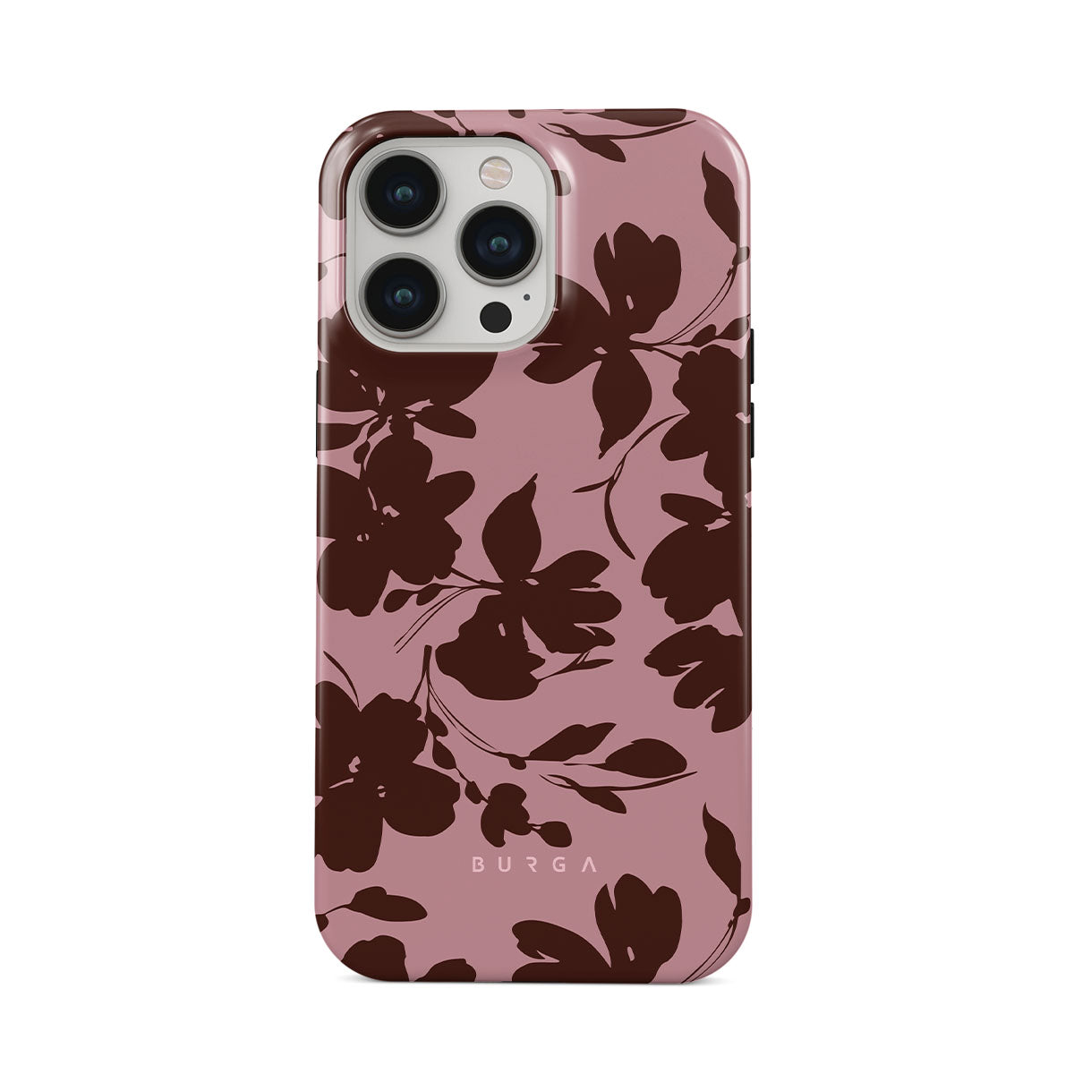 Quietly bold, our Gossip iPhone 13 Pro phone case design speaks volumes in subtlety. A soft rosé background, layered with deep red-brown floral accents, gives off a refined, almost mysterious vibe. It's for those who let the details do the talking.