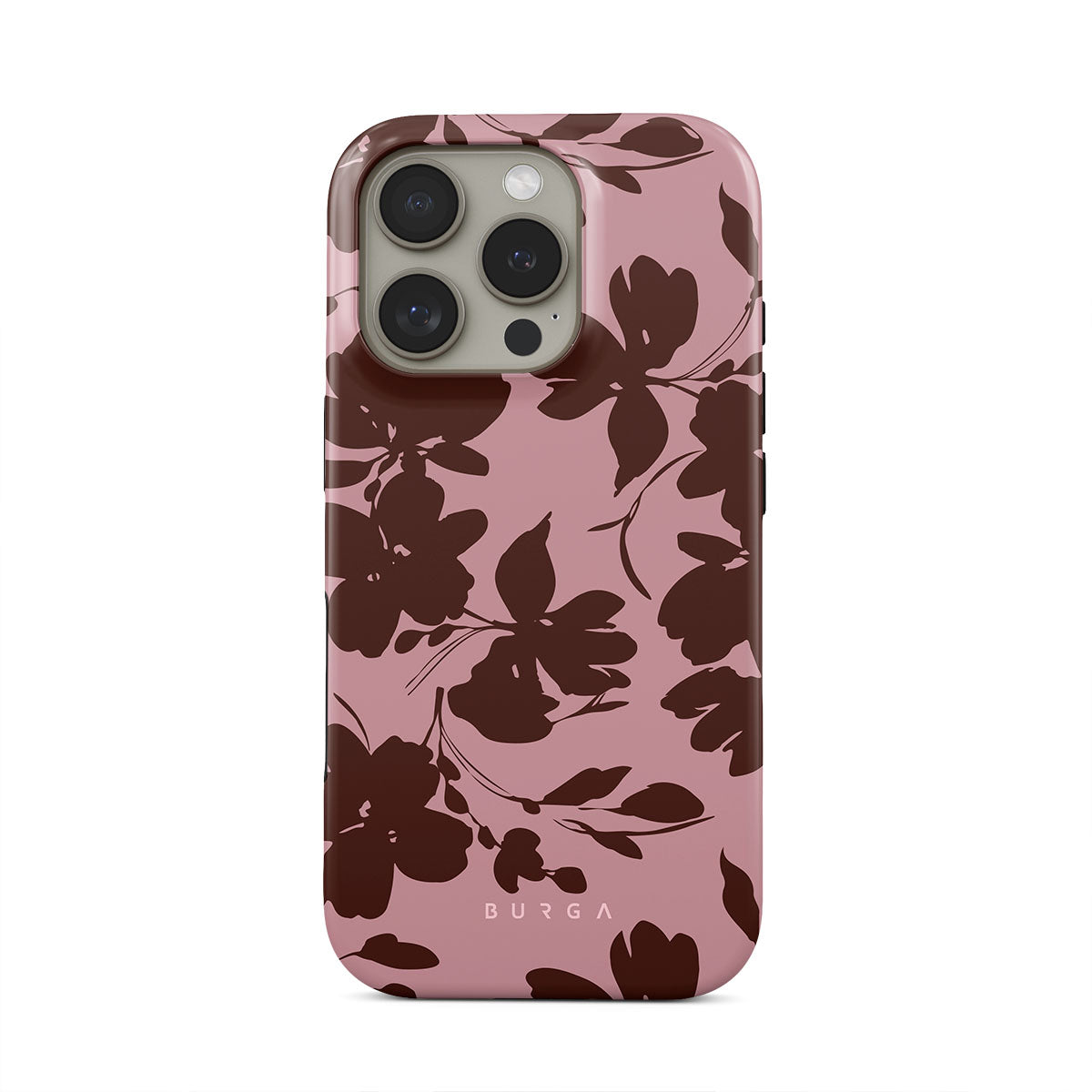 Quietly bold, our Gossip iPhone 16 Pro phone case design speaks volumes in subtlety. A soft rosé background, layered with deep red-brown floral accents, gives off a refined, almost mysterious vibe. It's for those who let the details do the talking.