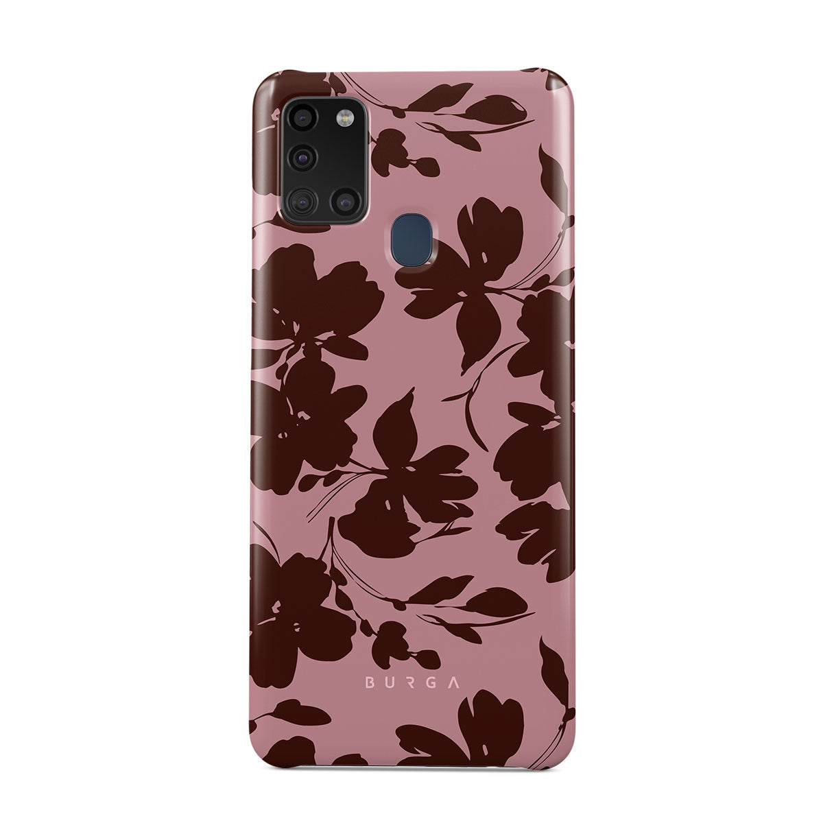 Quietly bold, our Gossip Samsung Galaxy A21s 4G phone case design speaks volumes in subtlety. A soft rosé background, layered with deep red-brown floral accents, gives off a refined, almost mysterious vibe. It's for those who let the details do the talking.