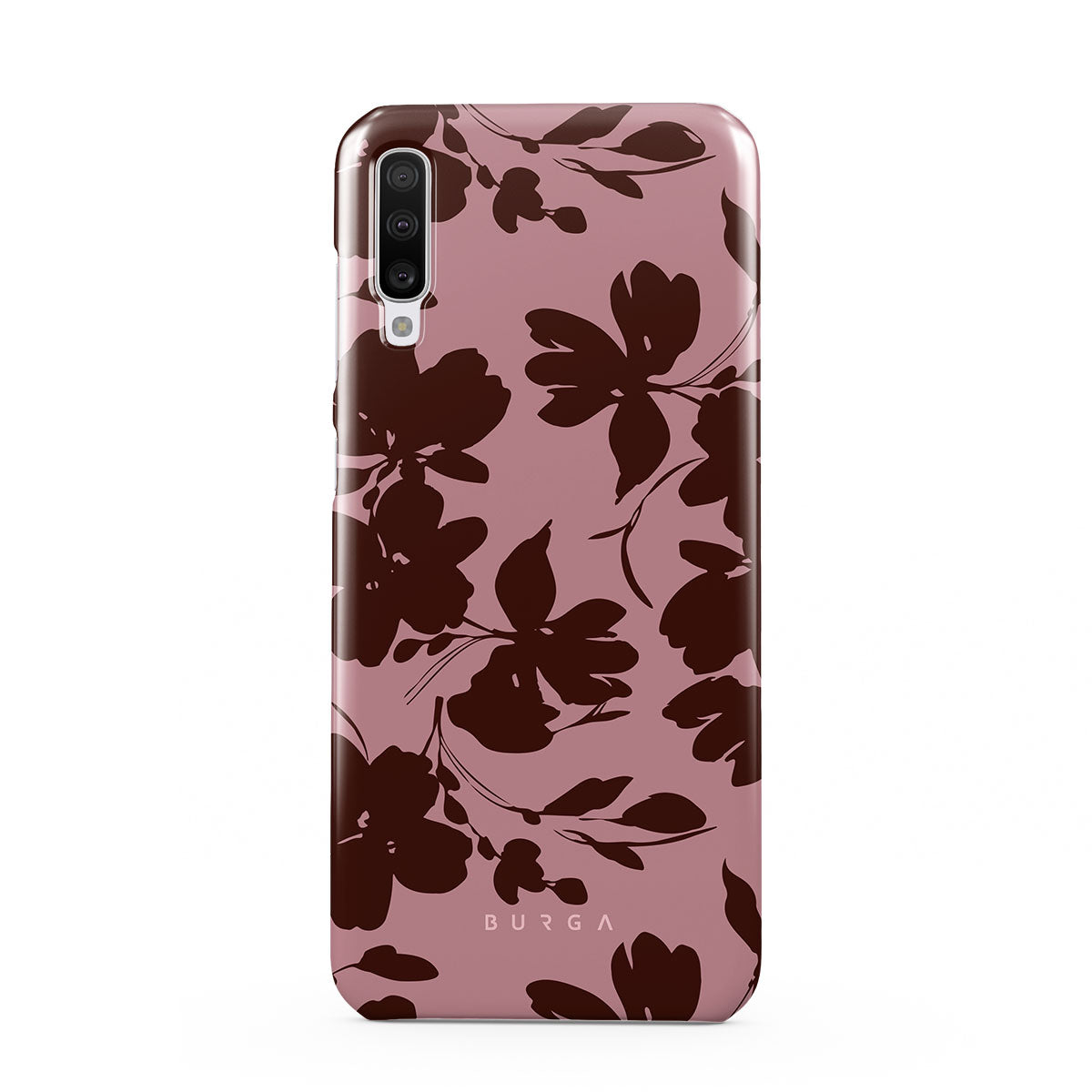 Quietly bold, our Gossip Samsung Galaxy A70 phone case design speaks volumes in subtlety. A soft rosé background, layered with deep red-brown floral accents, gives off a refined, almost mysterious vibe. It's for those who let the details do the talking.