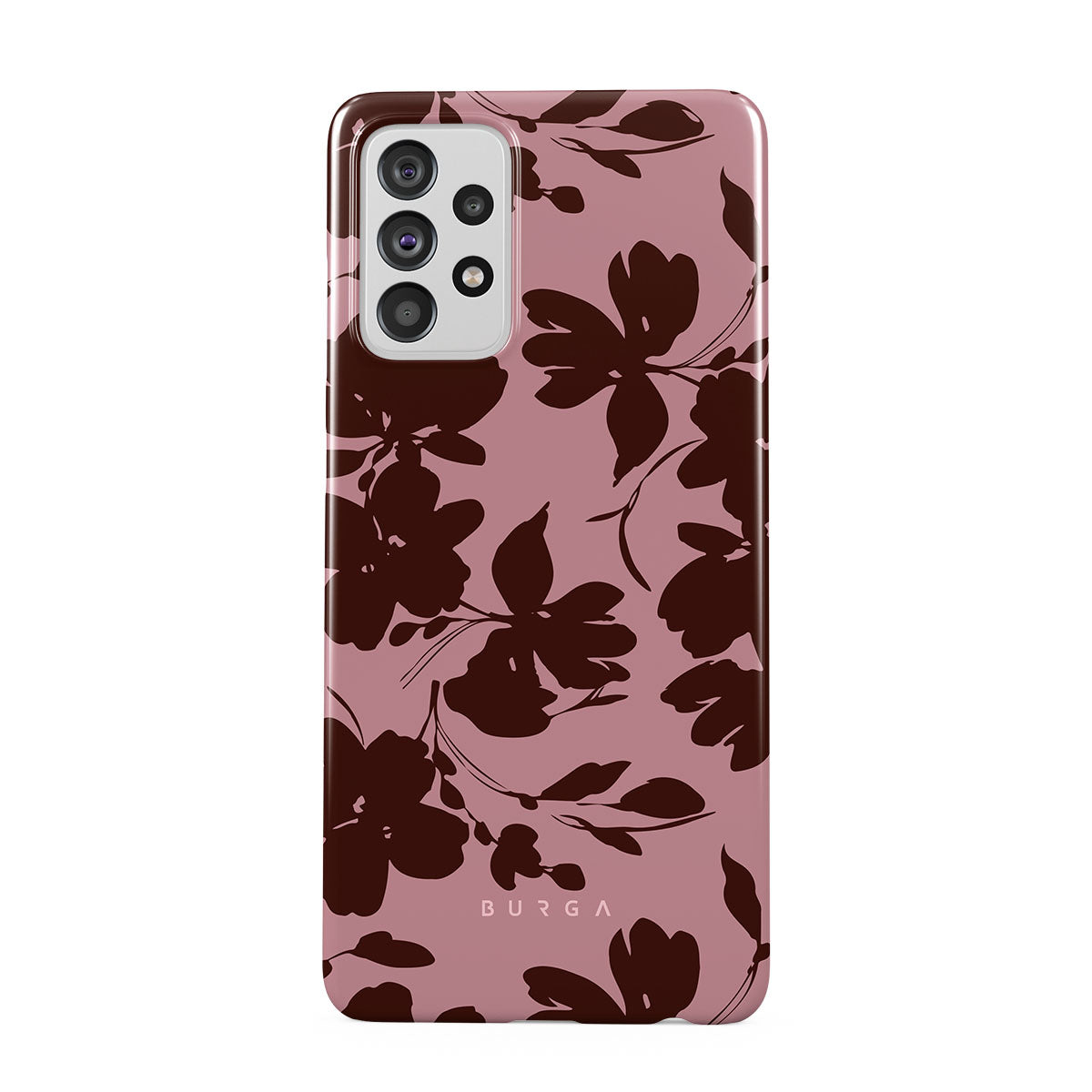 Quietly bold, our Gossip Samsung Galaxy A72 4G / 5G phone case design speaks volumes in subtlety. A soft rosé background, layered with deep red-brown floral accents, gives off a refined, almost mysterious vibe. It's for those who let the details do the talking.
