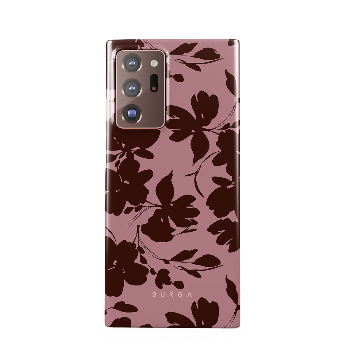 Quietly bold, our Gossip Samsung Galaxy Note 20 Ultra 4G / 5G phone case design speaks volumes in subtlety. A soft rosé background, layered with deep red-brown floral accents, gives off a refined, almost mysterious vibe. It's for those who let the details do the talking.