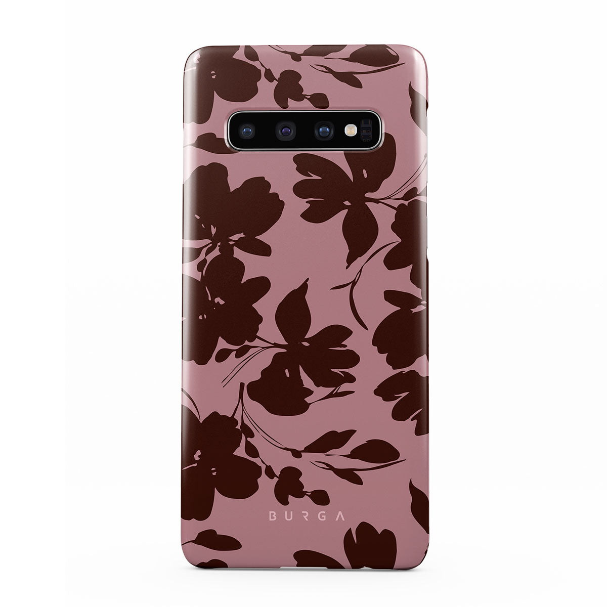 Quietly bold, our Gossip Samsung Galaxy S10 Plus phone case design speaks volumes in subtlety. A soft rosé background, layered with deep red-brown floral accents, gives off a refined, almost mysterious vibe. It's for those who let the details do the talking.