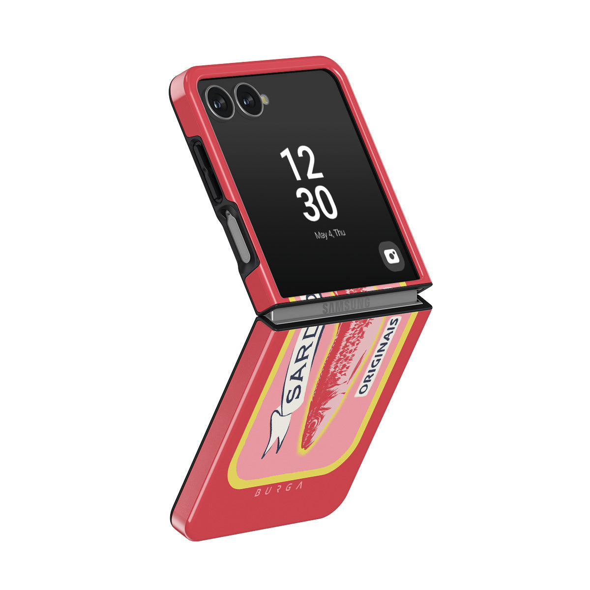 Sardines in a can? Oh no, honey. This Samsung Galaxy Z Flip 7 Case phone case design is all about Mediterranean elegance with a twist—like strolling through a market in a seaside village, finding little treasures and loving every second of it. Pure class, without trying too hard. This design features: retro tin, sardines, vintage Mediterranean elements, elegant fonts, pastel colors