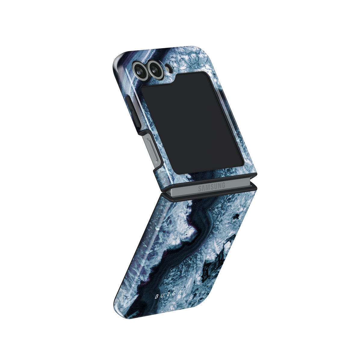 The gray marble pattern of our hard-shell Samsung Galaxy Z Flip 6 phone case inspired by the frozen lake adds a dreamy cool-toned blue color that is sure to become a hit in everyone's style. Frost-inspired gray marble swirls look enchanting while protecting your cellphone.