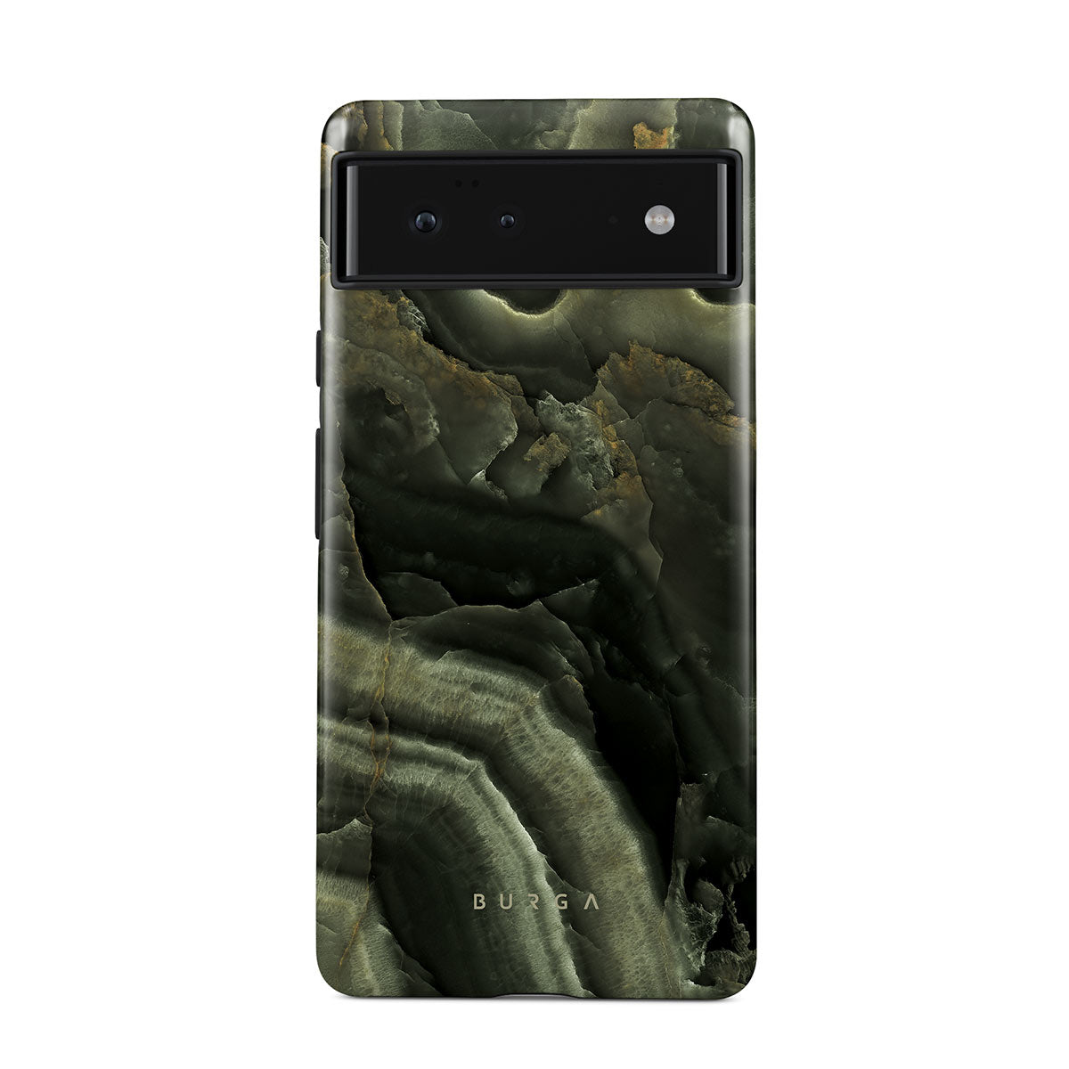 Carry the mystery of unexplored land found in an ominous misty forest with a green marble Google Pixel 6a phone case inspired by it. The case combines the popular marble trend with heavy-duty protection becoming a unique companion to your device.