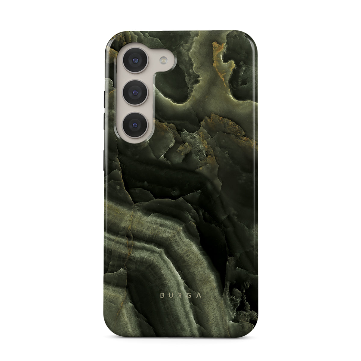 Carry the mystery of unexplored land found in an ominous misty forest with a green marble Samsung Galaxy S23 Plus phone case inspired by it. The case combines the popular marble trend with heavy-duty protection becoming a unique companion to your device.