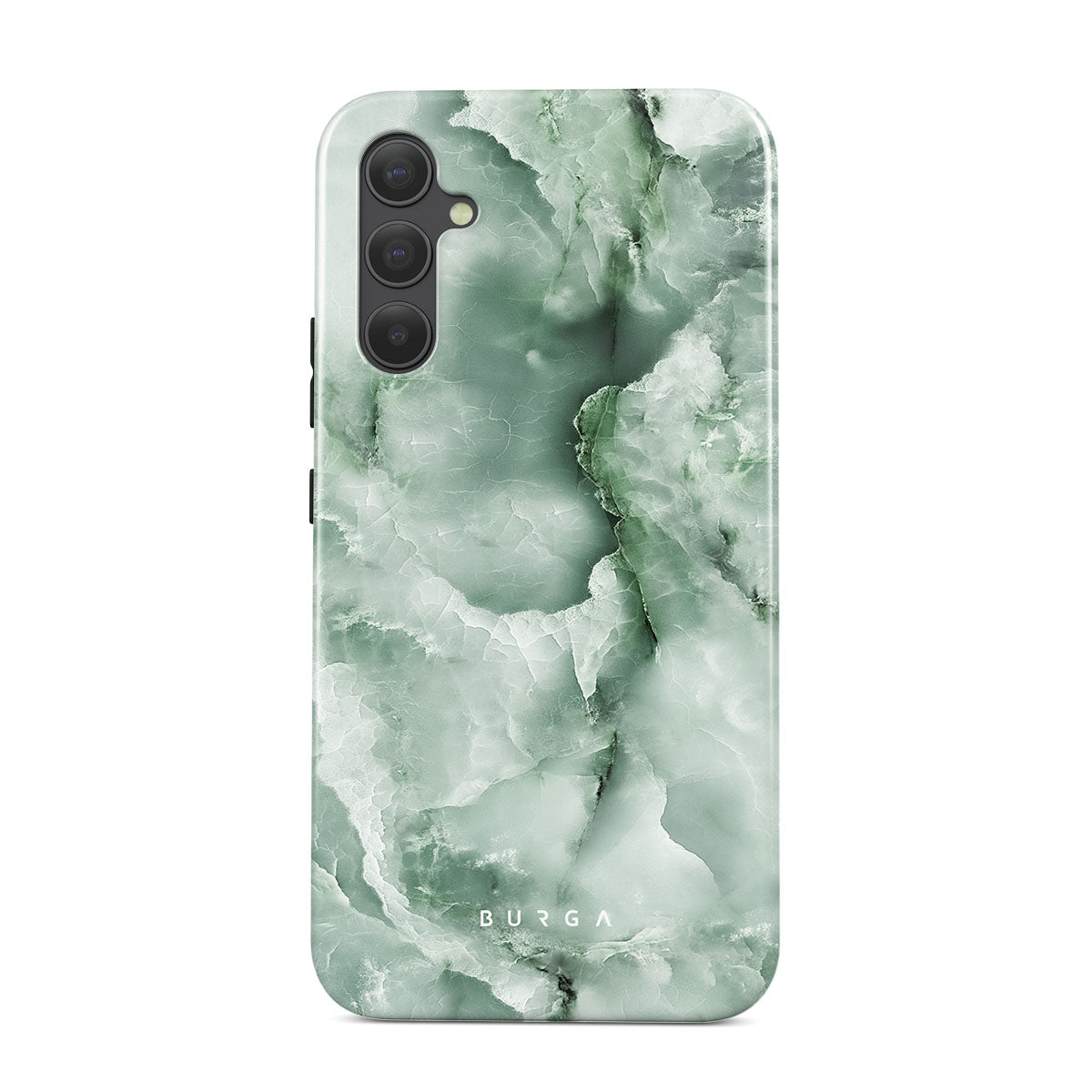 Our Pistachio Cheesecake Samsung Galaxy A34 phone case is inspired by the soft green color of pistachios. The marble pattern never goes out of style, and reimagined design with pastel green and white swirls offers a designer feel. Such a hard-shell case will provide heavy-duty protection while adding a touch of pastel to your collection.