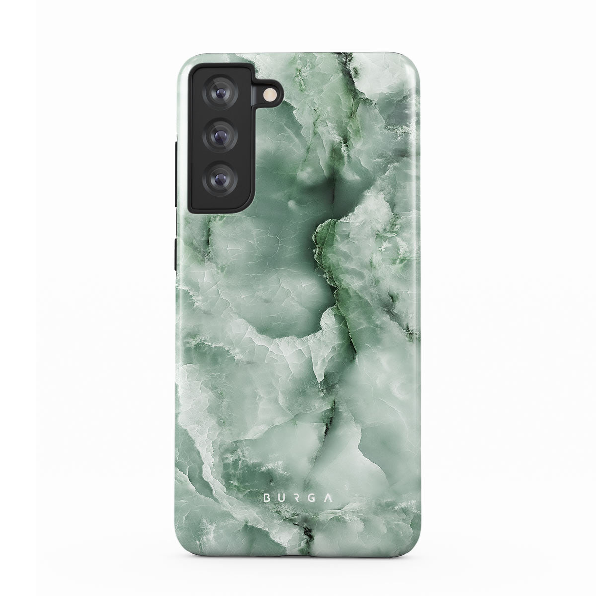 Our Pistachio Cheesecake Samsung Galaxy S21 FE phone case is inspired by the soft green color of pistachios. The marble pattern never goes out of style, and reimagined design with pastel green and white swirls offers a designer feel. Such a hard-shell case will provide heavy-duty protection while adding a touch of pastel to your collection.
