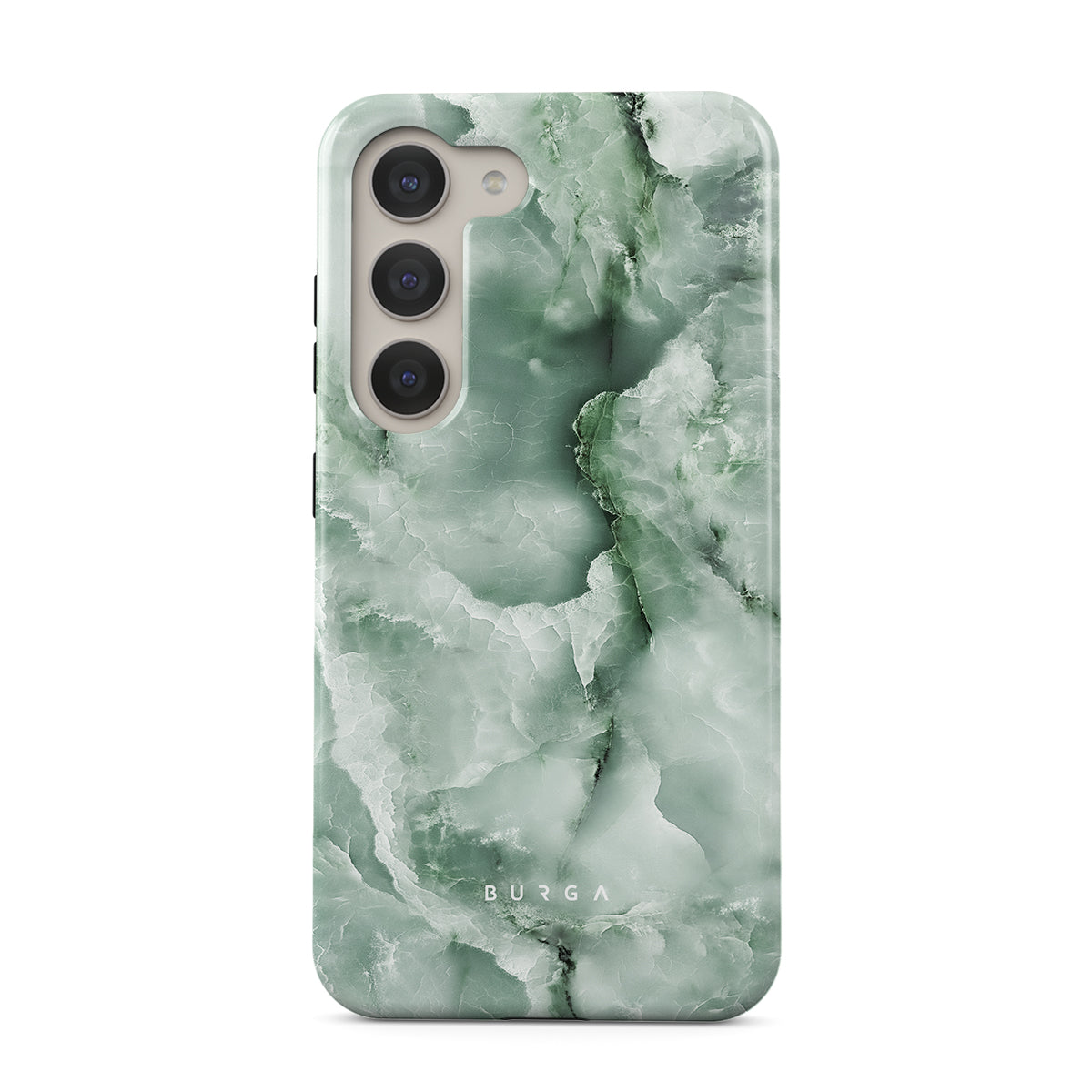 Our Pistachio Cheesecake Samsung Galaxy S23 Plus phone case is inspired by the soft green color of pistachios. The marble pattern never goes out of style, and reimagined design with pastel green and white swirls offers a designer feel. Such a hard-shell case will provide heavy-duty protection while adding a touch of pastel to your collection.