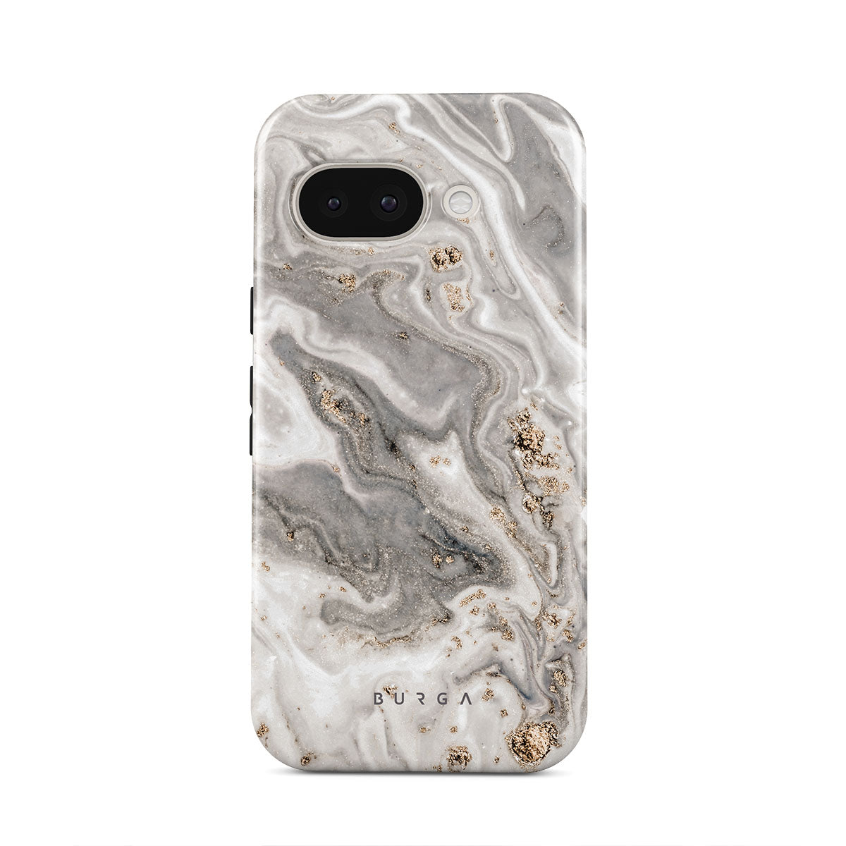 The wind outside is playing his songs. Some fear, some love, and some simply enjoy. But do not be afraid, with our grey marble Google Pixel 9a phone case inspired by a beautiful snowstorm, you can have the pretty part of it without any coldness. And as the case offers heavy-duty protection, your phone will also be safe and sound!