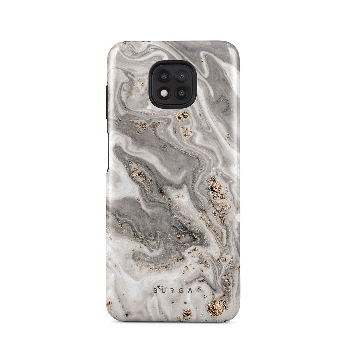The wind outside is playing his songs. Some fear, some love, and some simply enjoy. But do not be afraid, with our grey marble Motorola Moto G Power 2021 phone case inspired by a beautiful snowstorm, you can have the pretty part of it without any coldness. And as the case offers heavy-duty protection, your phone will also be safe and sound!