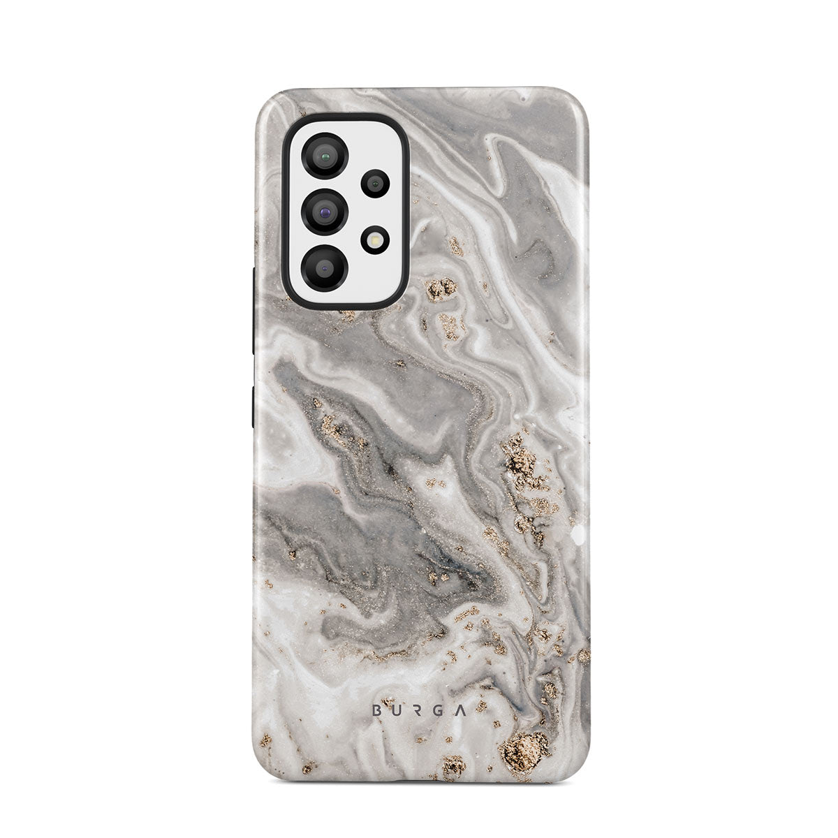 The wind outside is playing his songs. Some fear, some love, and some simply enjoy. But do not be afraid, with our grey marble Samsung Galaxy A72 phone case inspired by a beautiful snowstorm, you can have the pretty part of it without any coldness. And as the case offers heavy-duty protection, your phone will also be safe and sound!