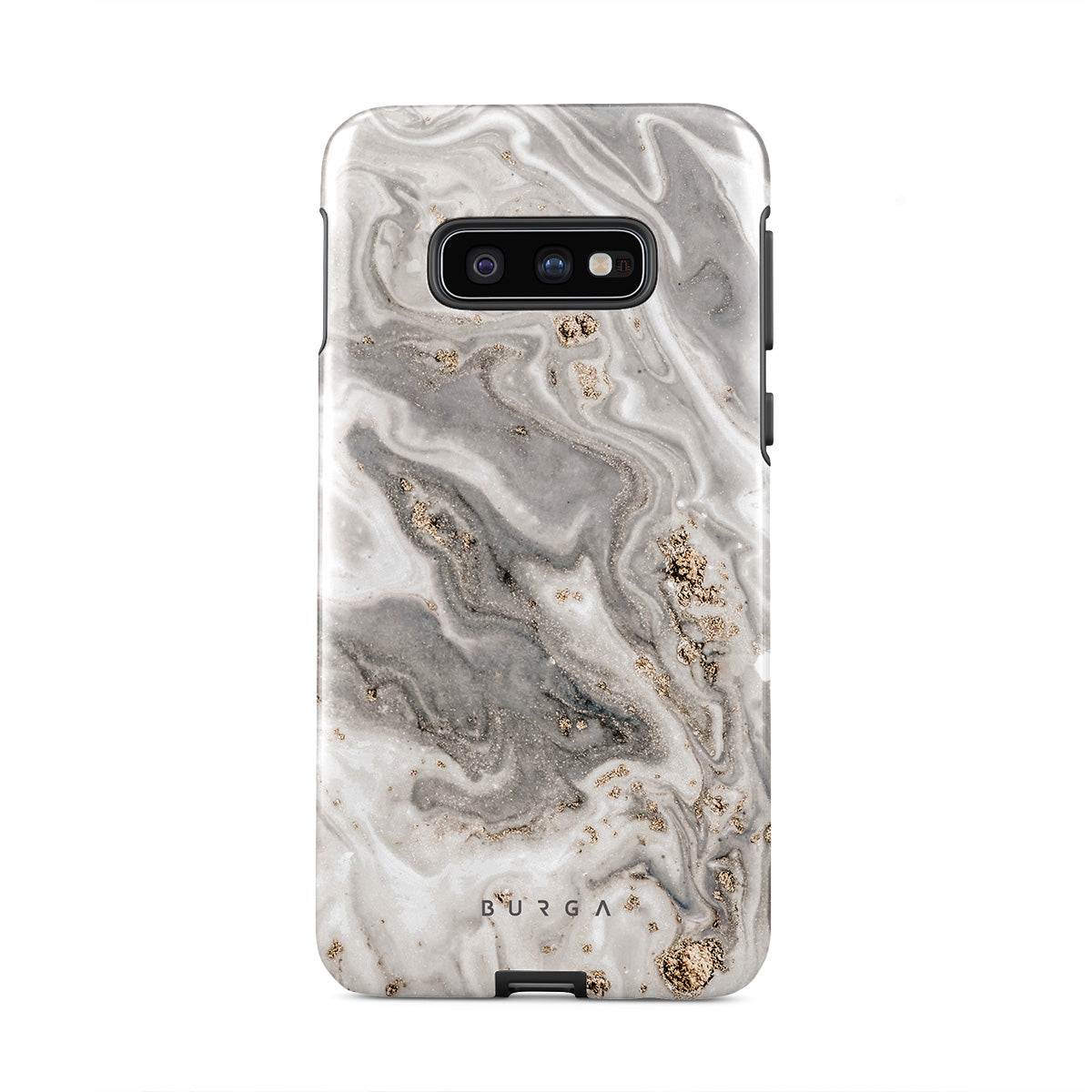 The wind outside is playing his songs. Some fear, some love, and some simply enjoy. But do not be afraid, with our grey marble Samsung Galaxy S10E phone case inspired by a beautiful snowstorm, you can have the pretty part of it without any coldness. And as the case offers heavy-duty protection, your phone will also be safe and sound!