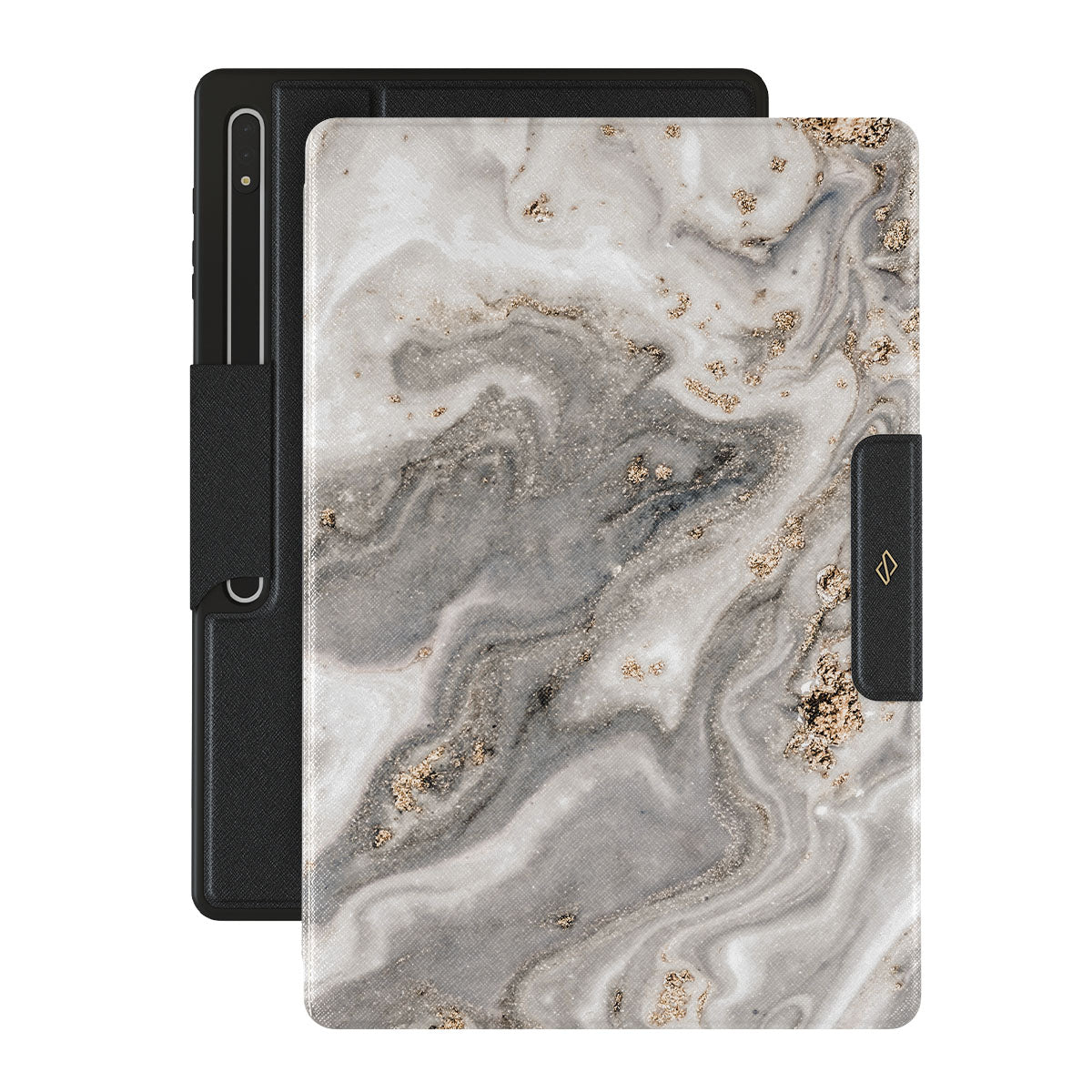 The wind outside is playing his songs. Some fear, some love, and some simply enjoy. But do not be afraid, with our grey marble Samsung Galaxy Tab S10 Ultra folio case inspired by a beautiful snowstorm, you can have the pretty part of it without any coldness. And as the case offers heavy-duty protection, your Galaxy Tab will also be safe and sound!