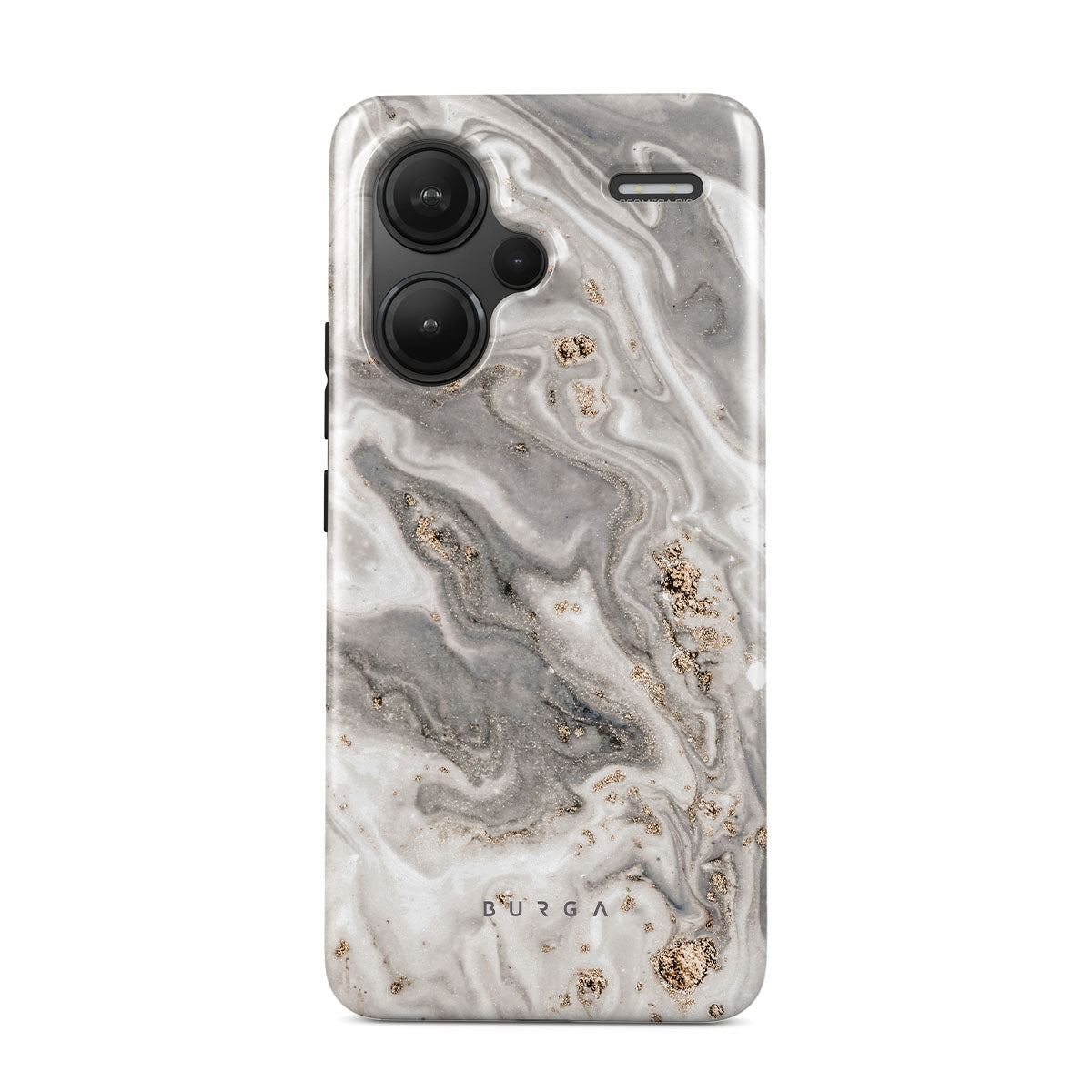The wind outside is playing his songs. Some fear, some love, and some simply enjoy. But do not be afraid, with our grey marble Xiaomi Redmi Note 13 Pro+ 5G phone case inspired by a beautiful snowstorm, you can have the pretty part of it without any coldness. And as the case offers heavy-duty protection, your phone will also be safe and sound!